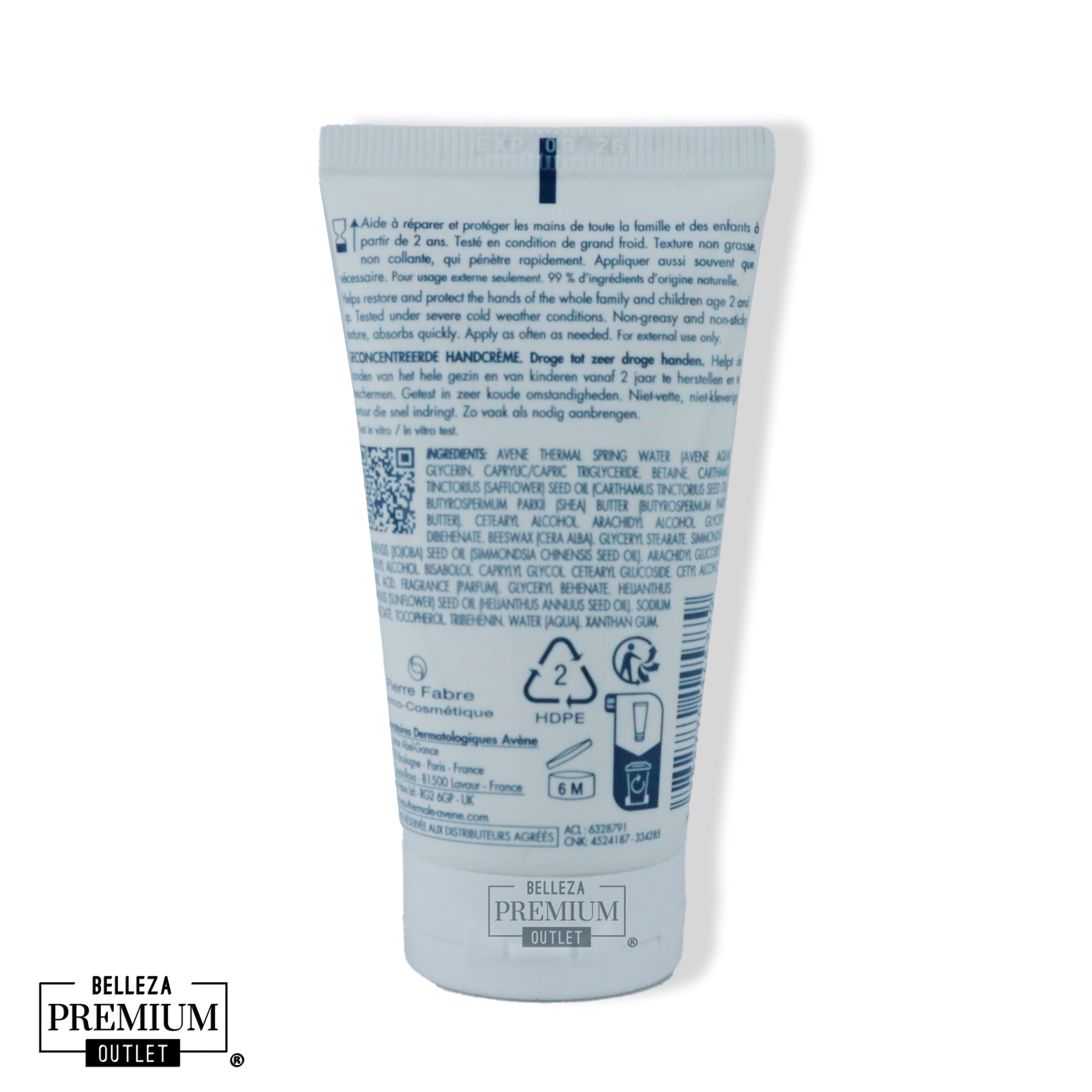 Avene Cold Cream Concentrated Hand Cream es una crema altamente nutritiva y reparadora, formulada para calmar, proteger y restaurar la piel de las manos secas, agrietadas o dañadas por el frío, el lavado frecuente o el uso de desinfectantes.