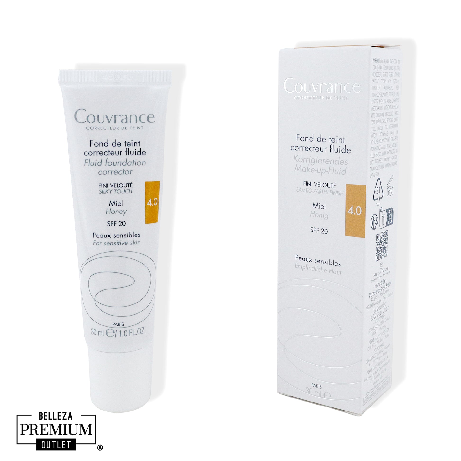 Avène Couvrance Fluid Foundation Honey 4 es una base de maquillaje fluida correctora, especialmente diseñada para piel sensible. Unifica el tono, corrige imperfecciones y aporta un acabado luminoso y natural. Su fórmula hipoalergénica y no comedogénica garantiza confort durante todo el día. El tono Honey (Miel 4) es ideal para pieles de tono medio a bronceado con subtono cálido.