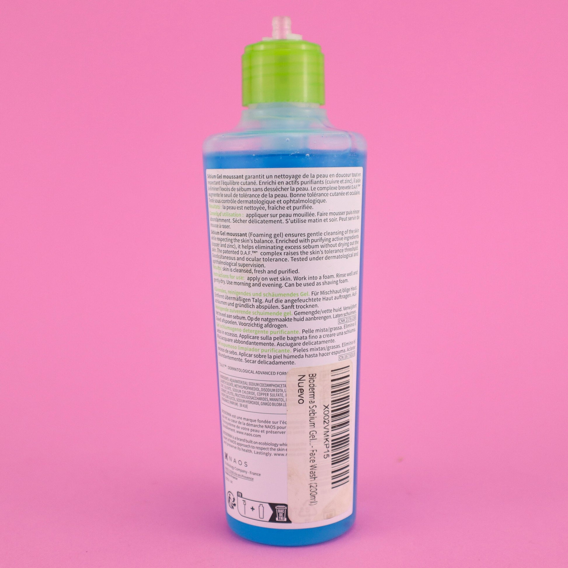 Bioderma Sebium Gel Moussant Face Wash 200ml TAPA DAÑADA/ FALTANTE