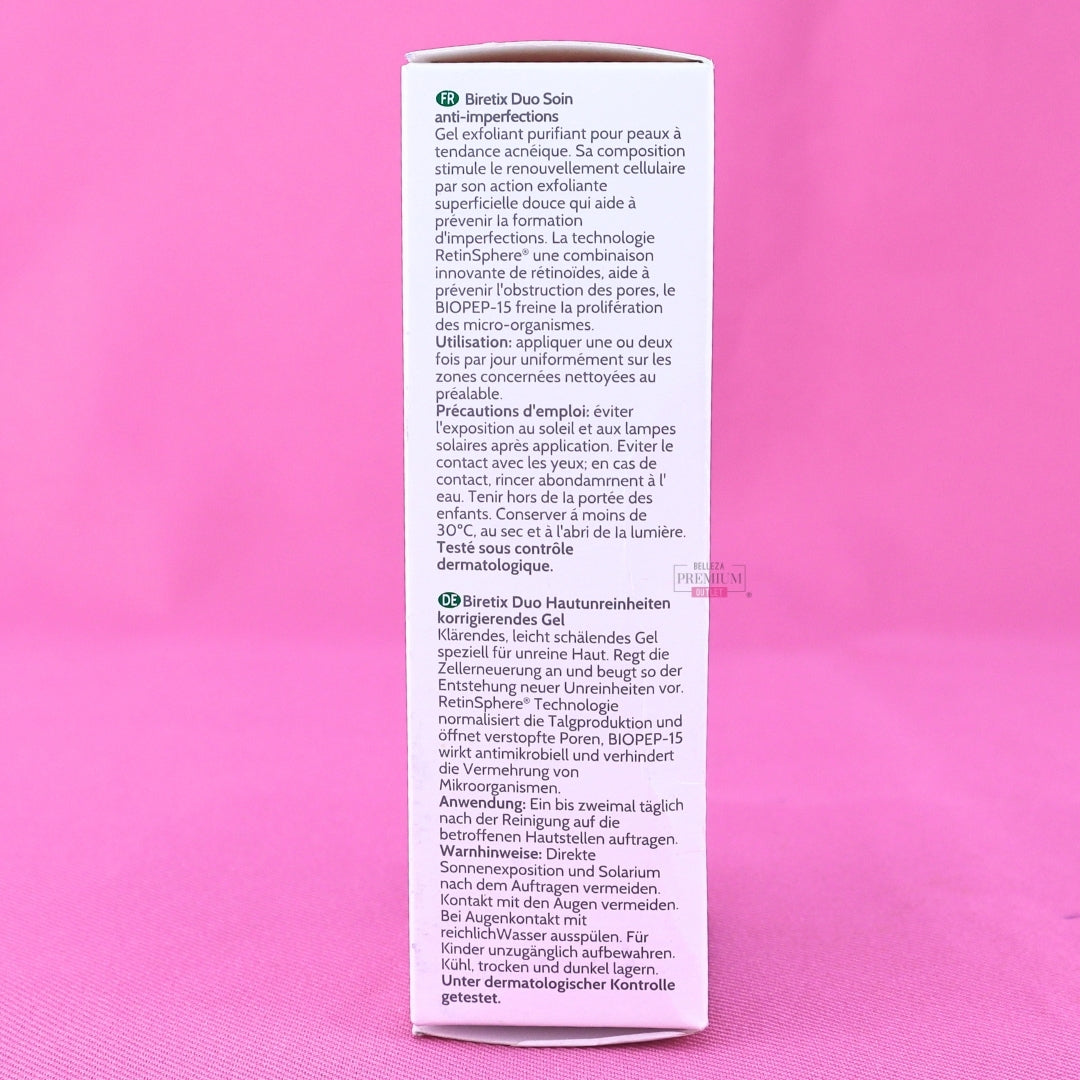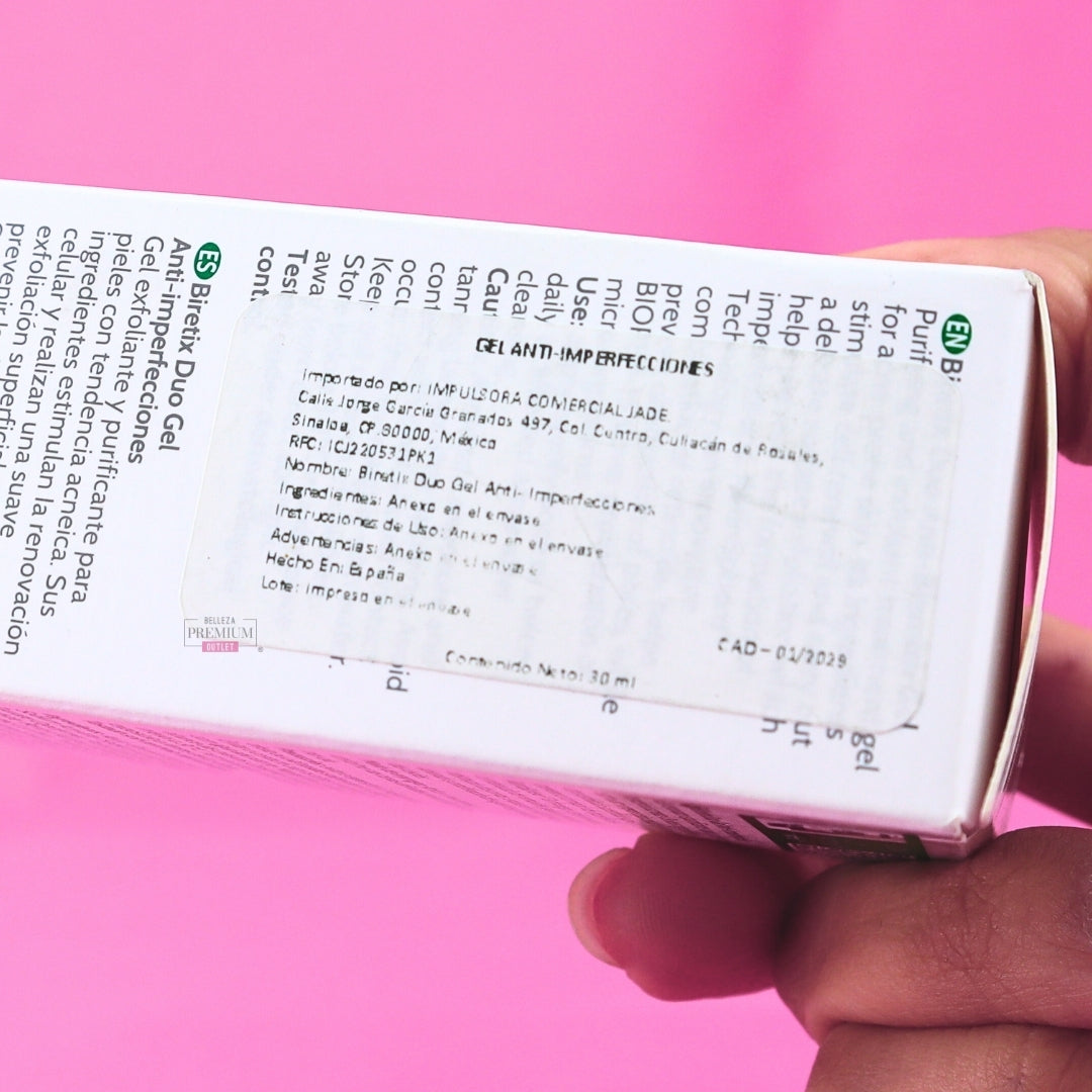 Luce una piel más limpia, uniforme y libre de granos con Biretix Duo Gel Anti-Imperfecciones, disponible en Belleza Premium Outlet con descuento especial por caja dañada, garantizando producto original, nuevo y sellado.