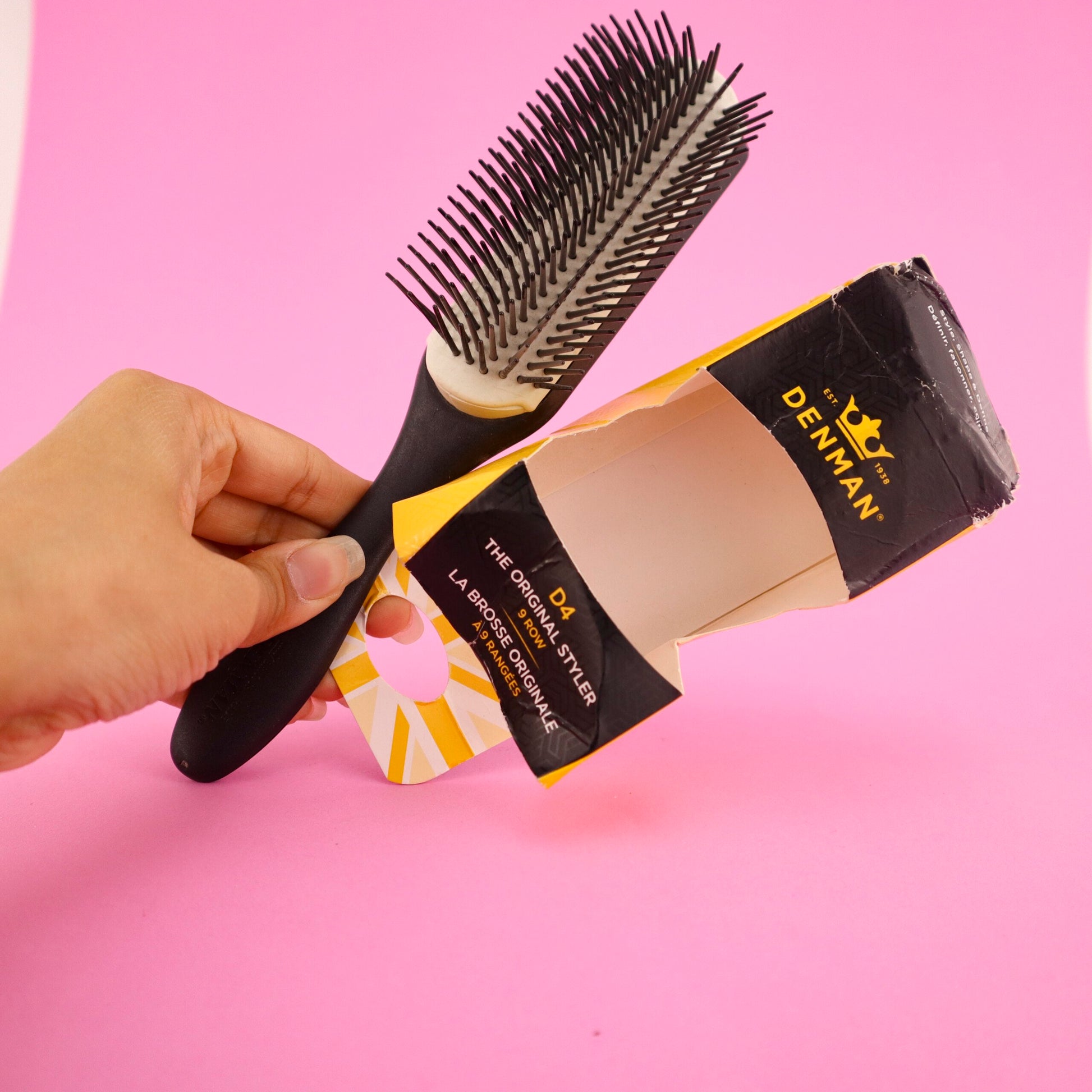Denman Cushion Brush Nylon Bristles, 9-Row (D4) EMPAQUE DAÑADO
