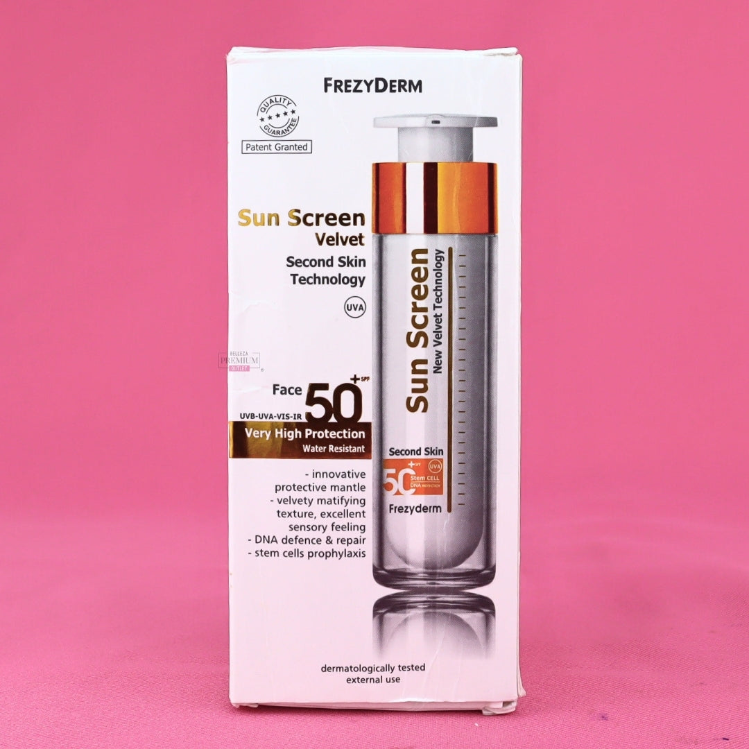 Frezyderm Sun Screen Velvet Face SPF 50+ – 50ml – CAJA DAÑADA