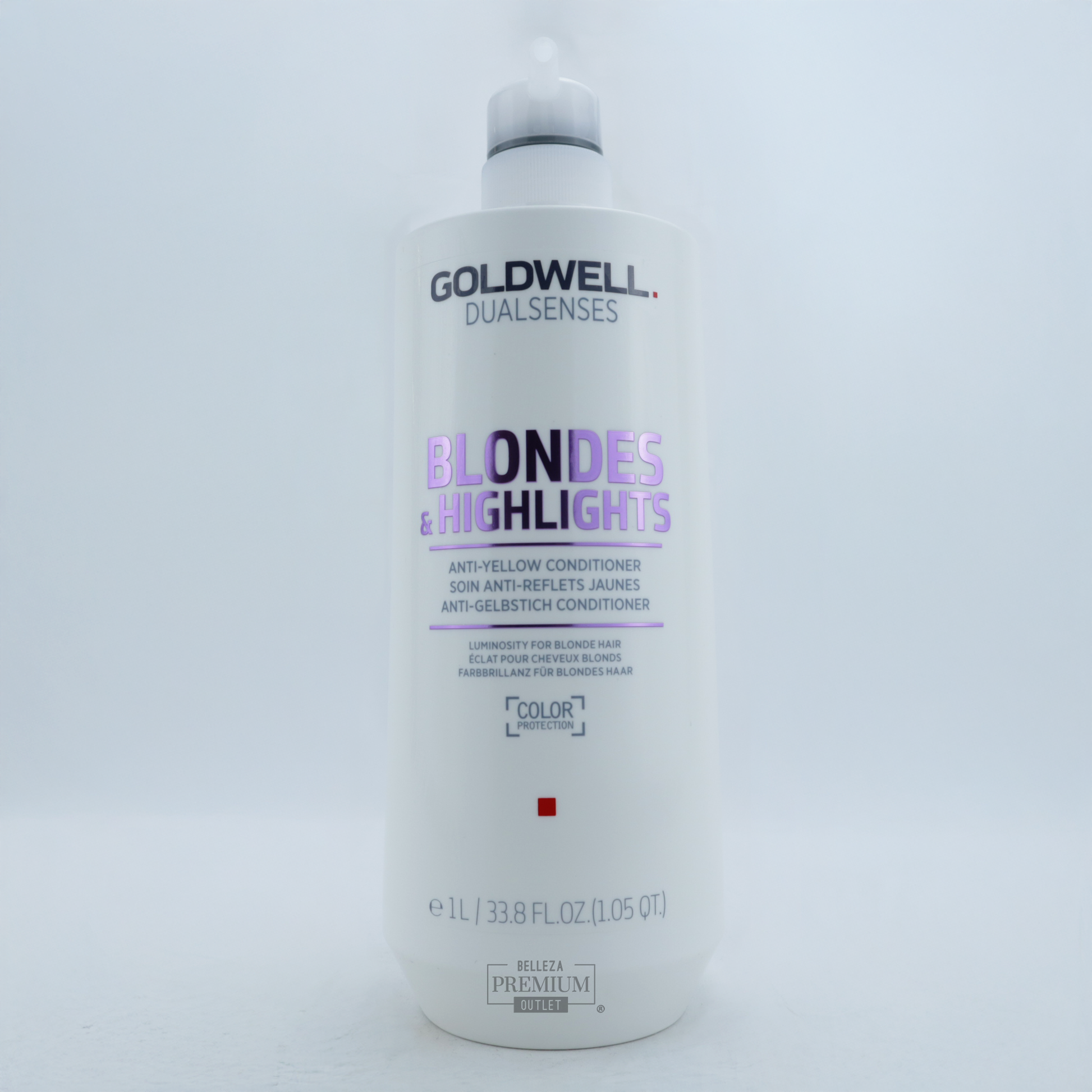 Goldwell Dualsenses Blondes & Highlights Anti-Yellow Conditioner en presentación de 1 litro es un acondicionador matizante profesional, diseñado para neutralizar los tonos amarillos en cabellos rubios, decolorados, con mechas o canosos, mientras hidrata profundamente y mejora la manejabilidad del cabello.