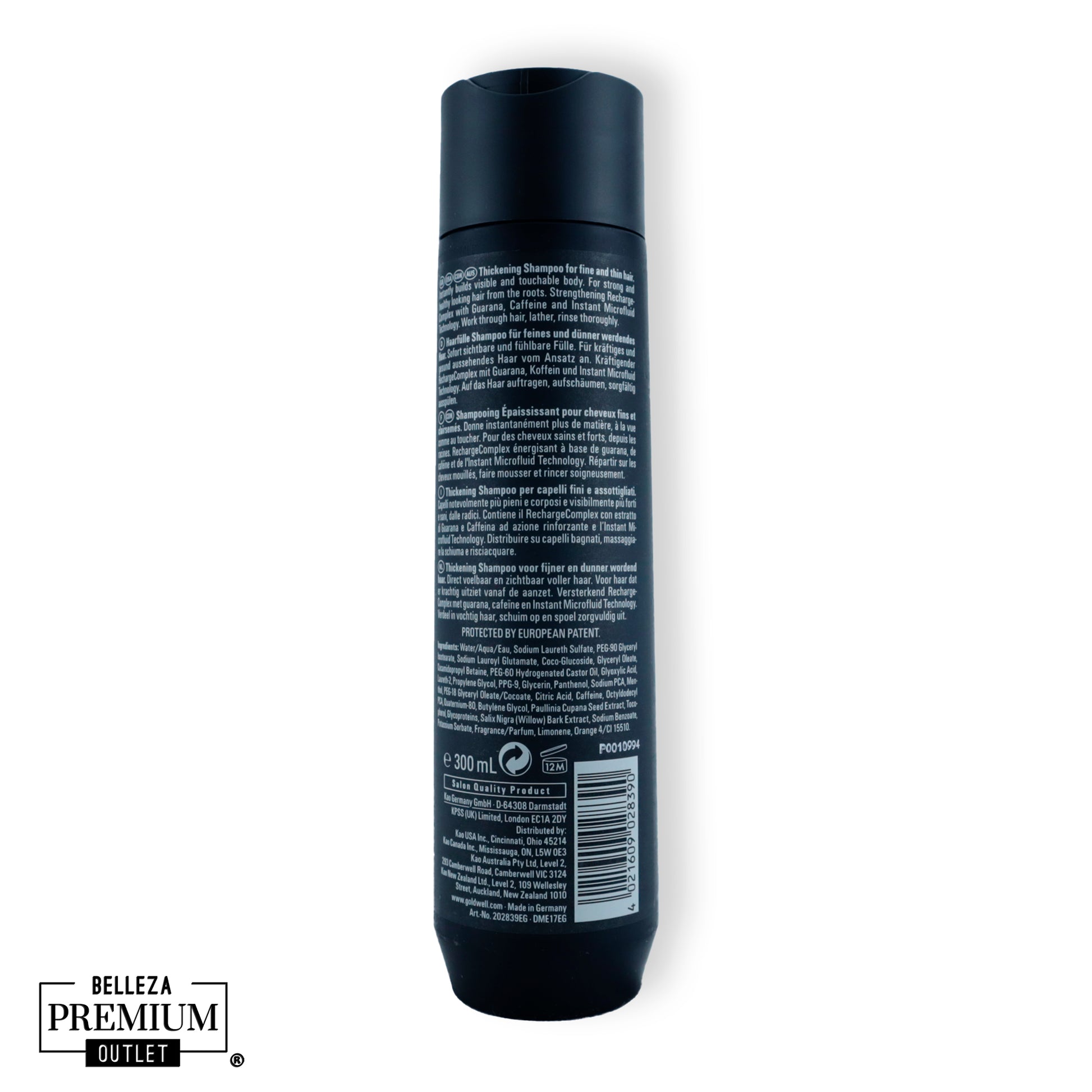 Agua/Aqua, lauril éter sulfato de sodio, cocamidopropil betaína, extracto de semilla de Paullinia cupana (guaraná), cafeína, pantenol, mentol, ácido glioxílico, glicoproteínas, glicerina, PCA sódico, entre otros.