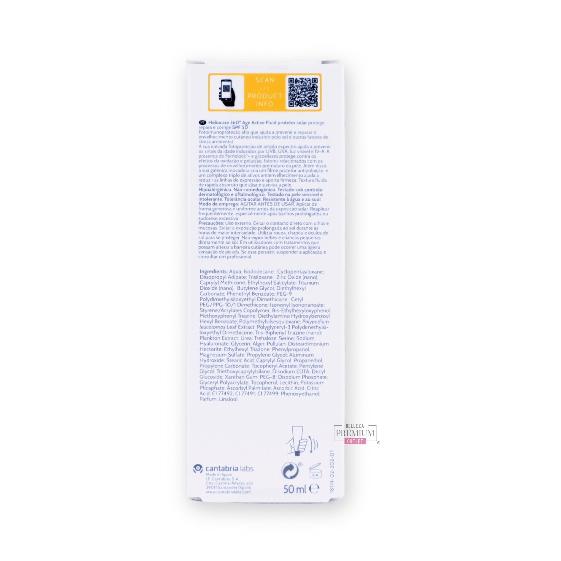 🚀 Disponible en BELLEZA PREMIUM OUTLET: Heliocare 360º Age Active Fluid SPF50+ 50ml, fotoprotección avanzada con acción antiedad.