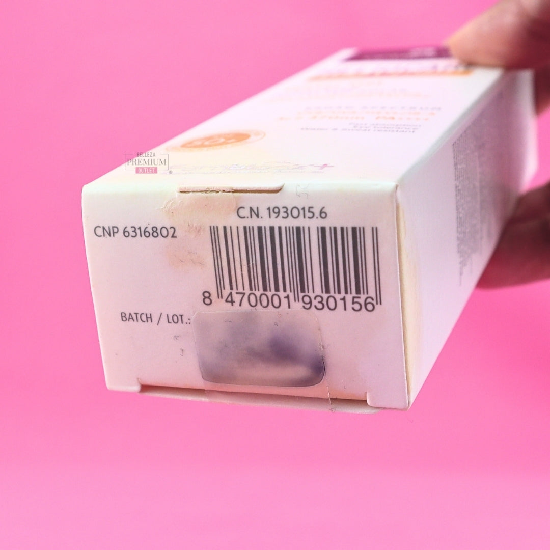 IMPORTANTE: Esta presentación se ofrece con la caja manchada o con restos de derrame, lo que puede haber afectado ligeramente el empaque exterior, pero no compromete la eficacia del producto. Perfecto para quienes buscan alta protección solar a un mejor precio sin preocuparse por la presentación estética.