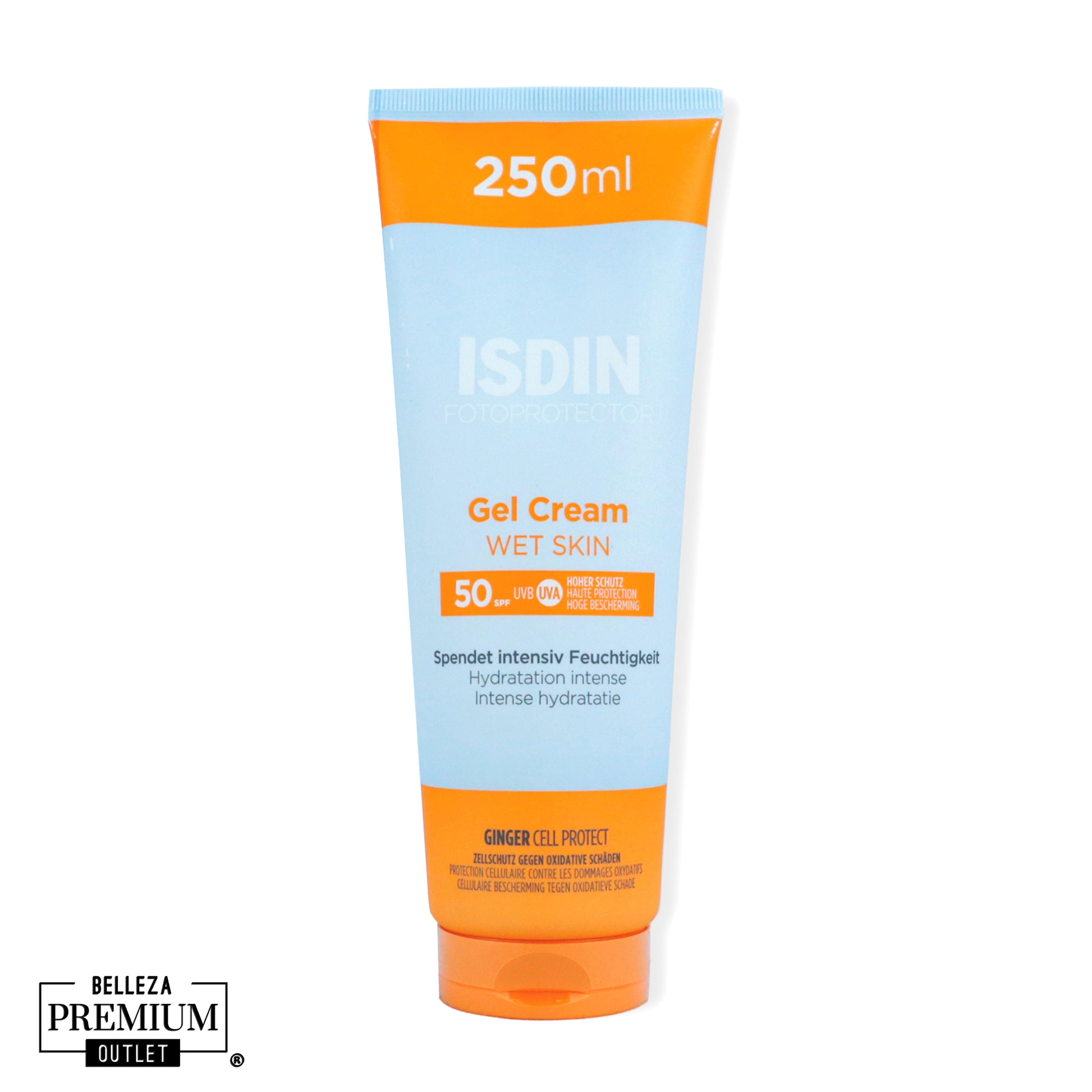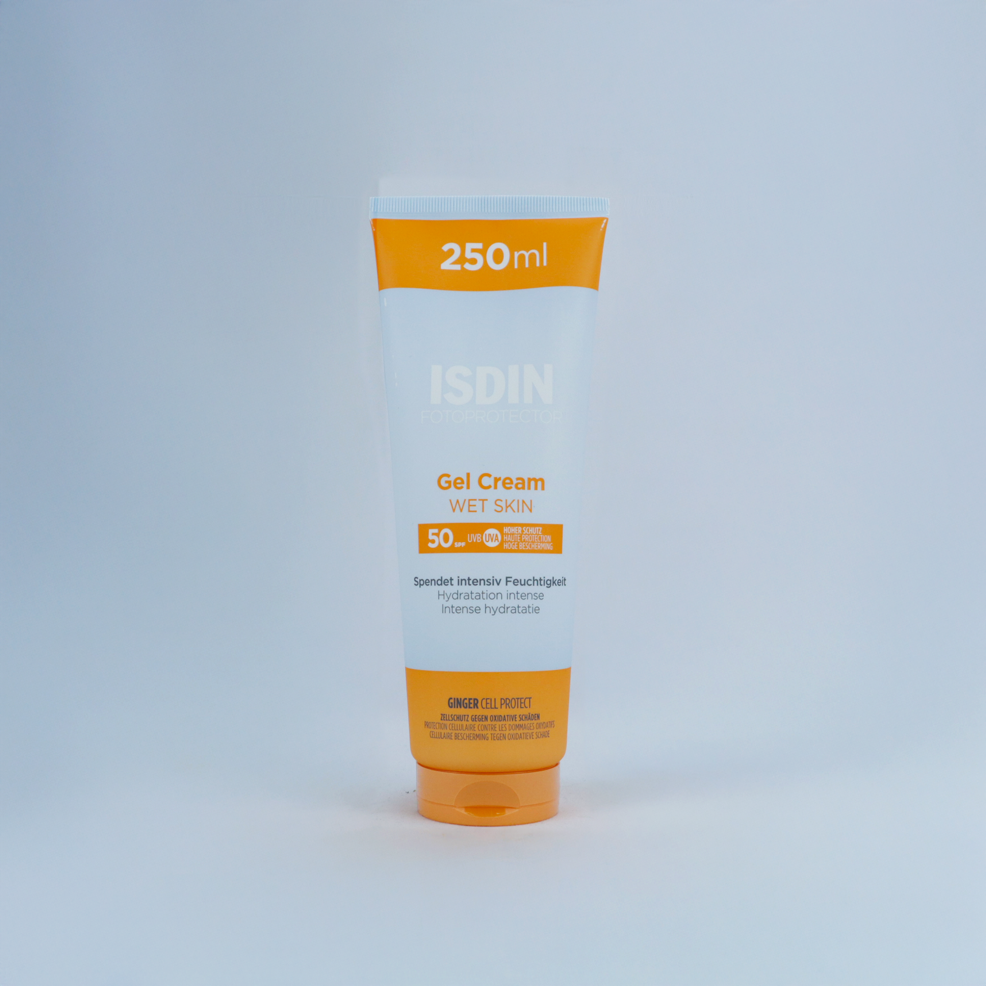 ISDIN Fotoprotector Gel Cream SPF 50+ 250ml es una protección solar corporal de muy alta eficacia , con una innovadora textura gel-crema que combina la frescura del gel con la hidratación de la crema . Perfecto para todo tipo de piel , incluso piel sensible o atópica , y en especial para quienes buscan una aplicación ligera, sin residuos grasos .