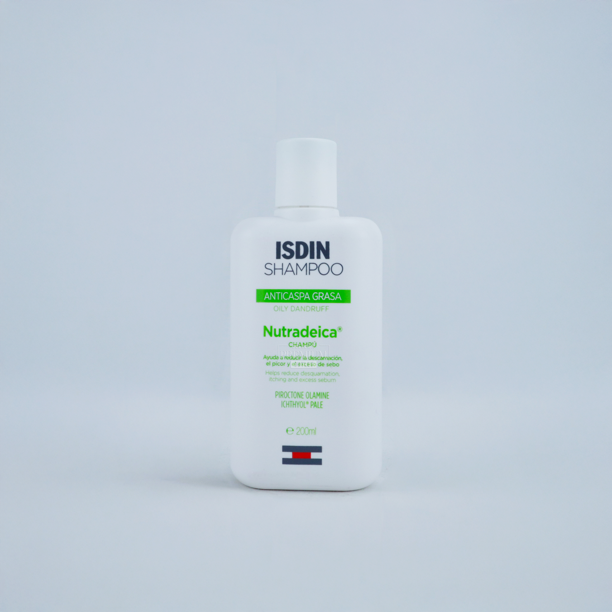 ISDIN Nutradeica Champú Anticaspa Grasa 200ml es un tratamiento dermatológico específico para combatir la caspa grasa y el exceso de sebo en el cuero cabelludo. Formulado con activos seborreguladores y antifúngicos, alivia el picor y el rojecimiento, dejando el cuero auditivo limpio y equilibrado desde el primer lavado.