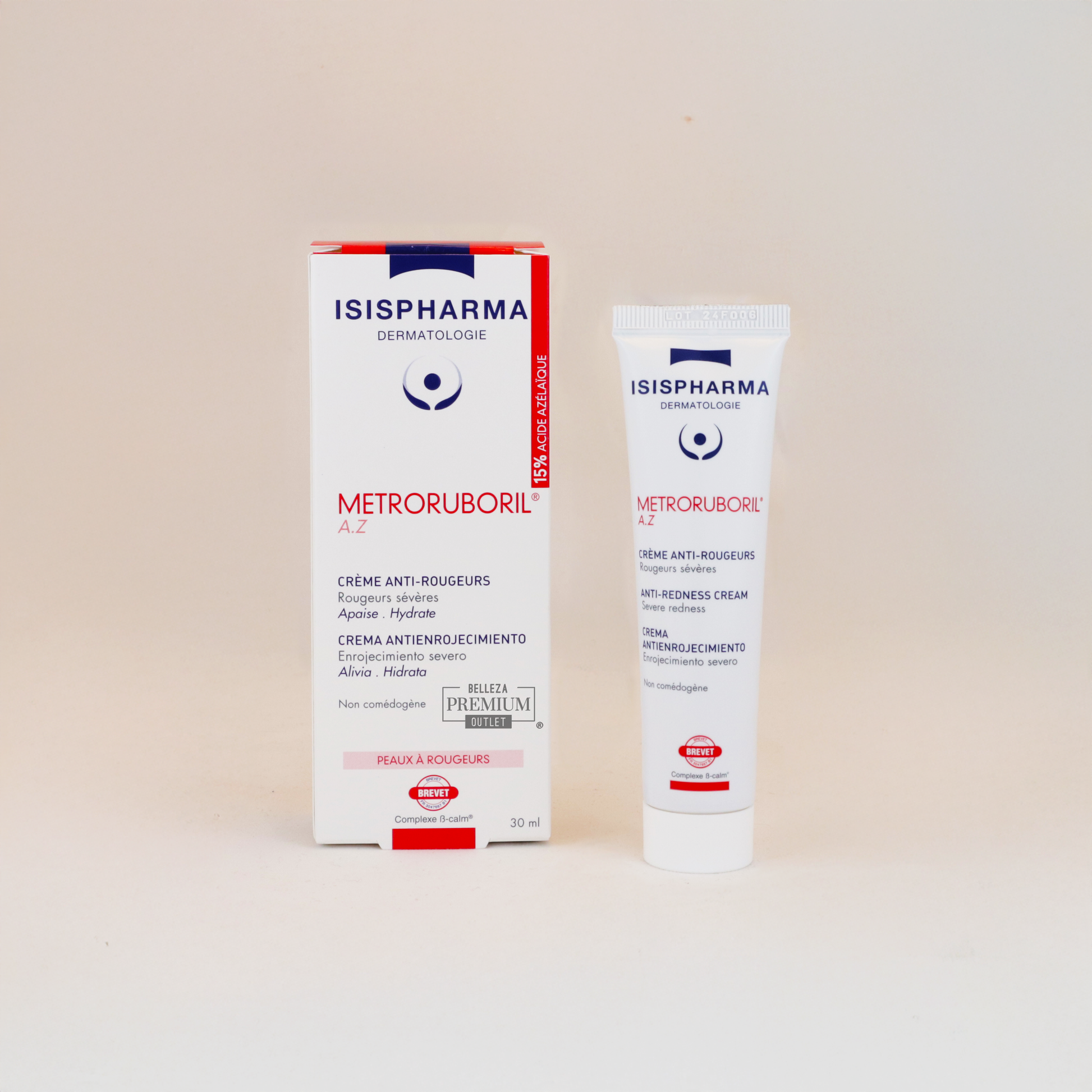 Puedes encontrar Isispharma Metroruboril A.Z Anti Redness Cream 30 ml en Belleza Premium Outlet, donde tendrás acceso a productos dermatológicos de alta calidad a precios accesibles. Ideal para quienes buscan una solución eficaz contra el enrojecimiento y las imperfecciones de la piel sensible.