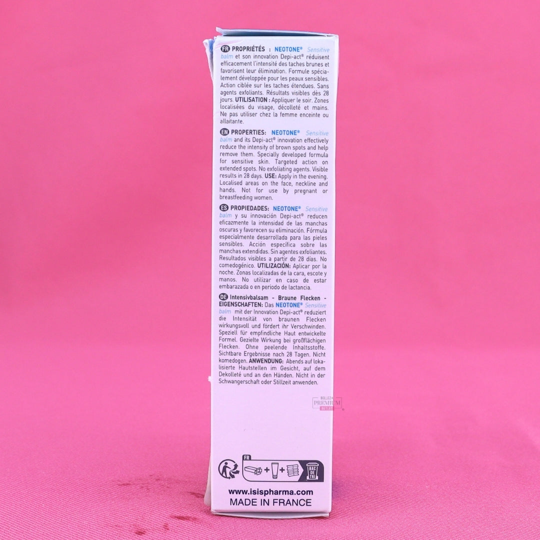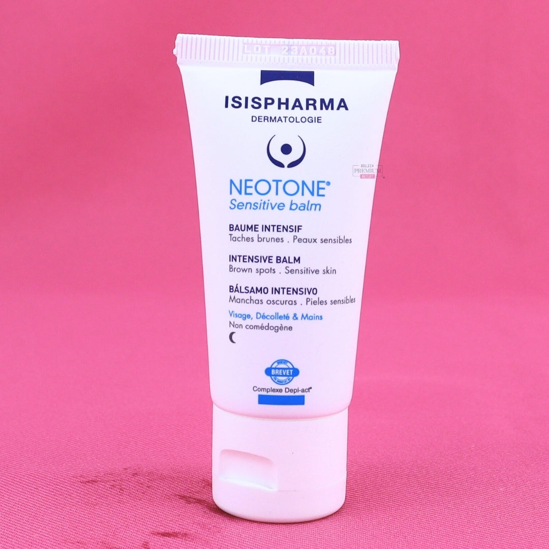 Neotone Sensitive Balm es un bálsamo intensivo diseñado para reducir la hiperpigmentación, marcas oscuras y mejorar la uniformidad del tono en pieles sensibles. Su textura suave y calmante lo convierte en un tratamiento especializado ideal para quienes sufren manchas postinflamatorias, melasma o después de tratamientos estéticos. Aunque la caja está dañada, el contenido se mantiene en perfecto estado y listo para su uso.