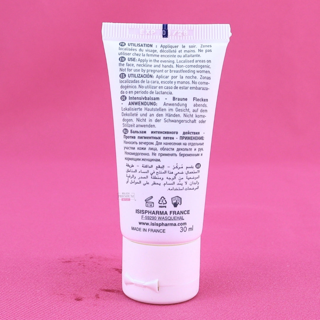 Contiene una fórmula avanzada que combina inhibidores de la melanina, refuerzos de barrera y agentes calmantes, sin perfumes ni alcoholes irritantes. Su textura cremosa no grasa facilita la absorción sin dejar residuos.