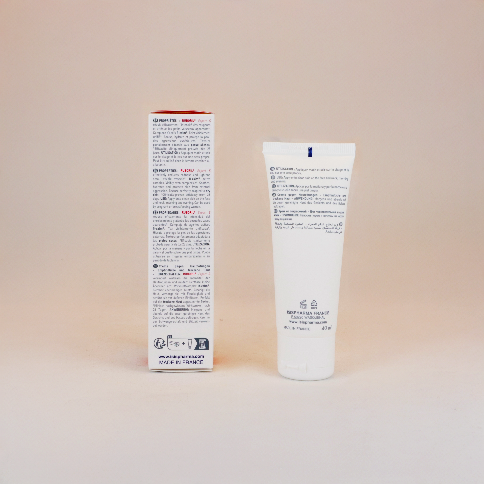 Isispharma Ruboril Expert S 40ml es una crema de tratamiento intensivo especialmente formulada para la piel sensible y con tendencia a la rosácea o cuperosis. Su fórmula rica y densa ayuda a reducir el enrojecimiento, calmar la piel irritada y mejorar la apariencia de los vasos sanguíneos visibles.