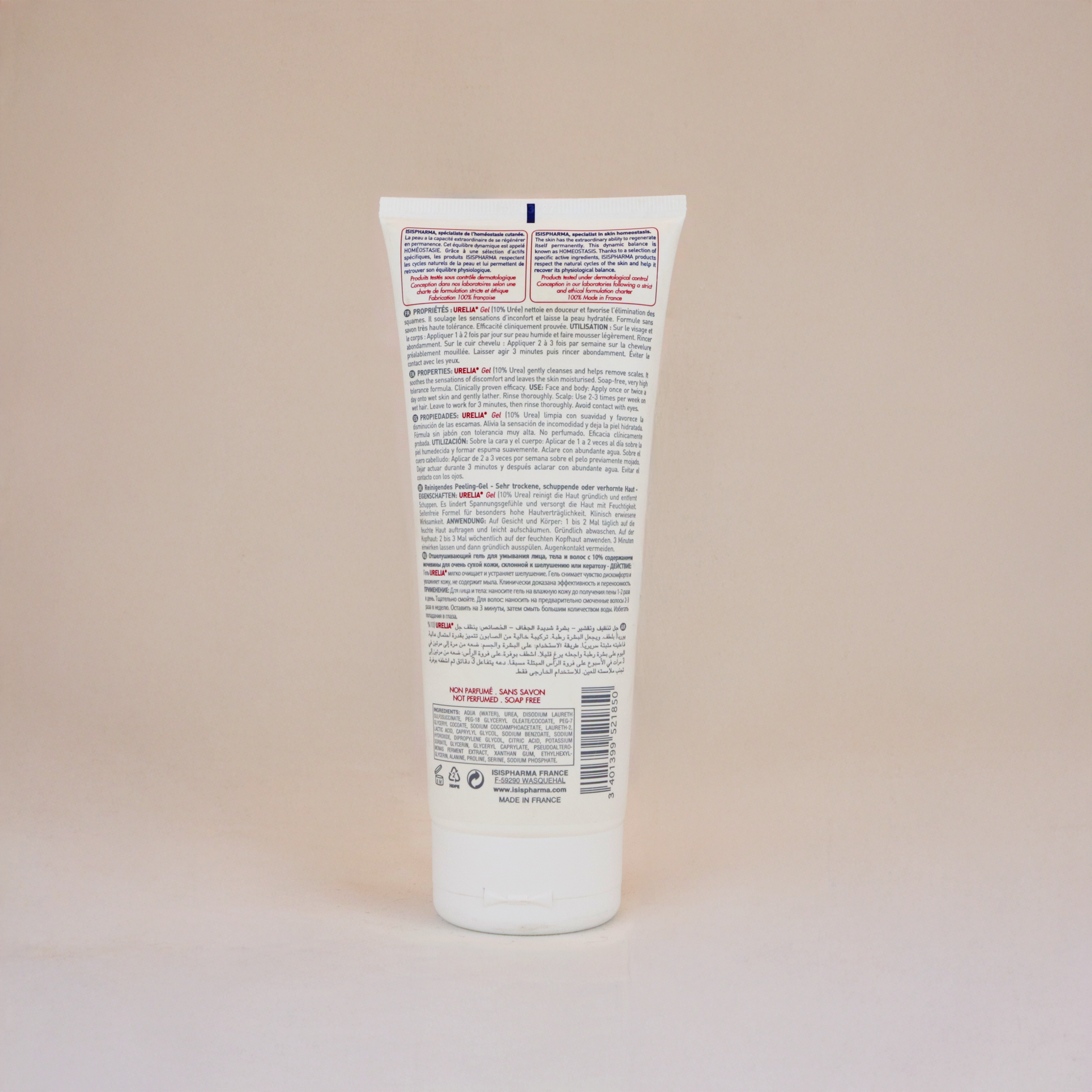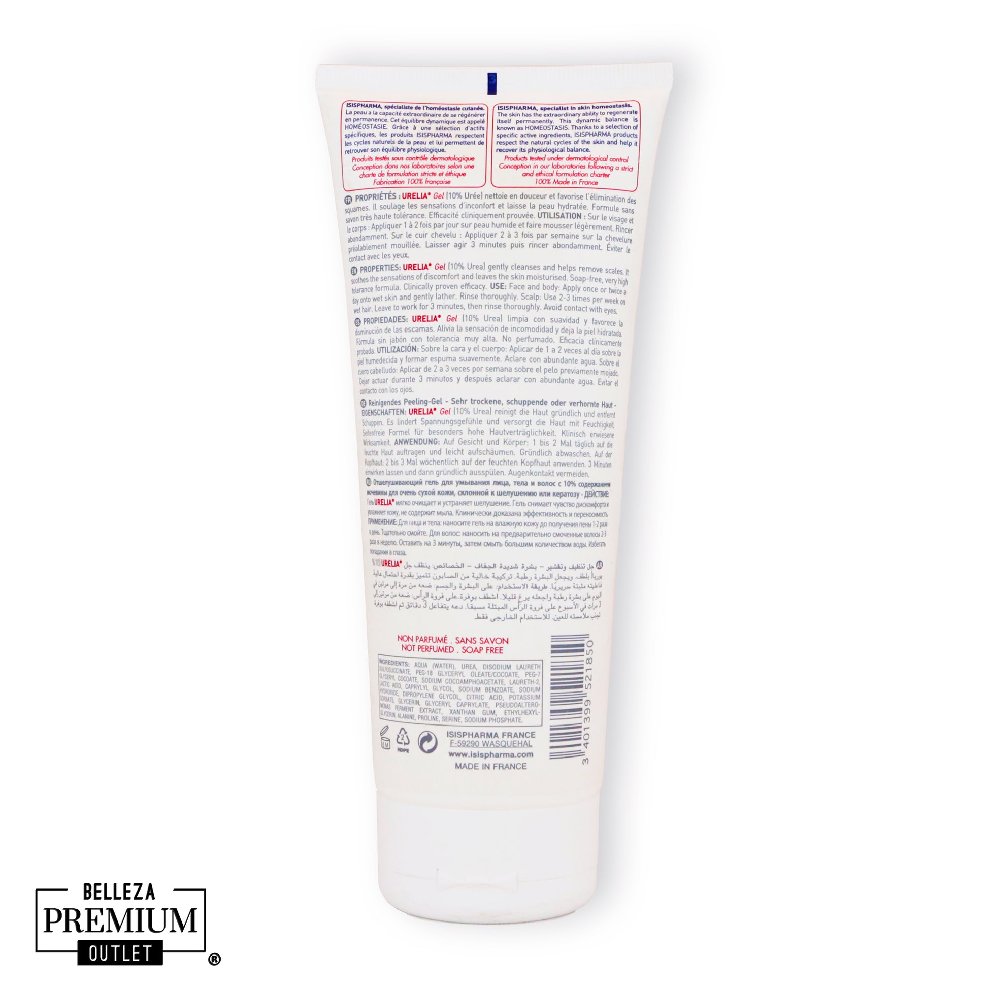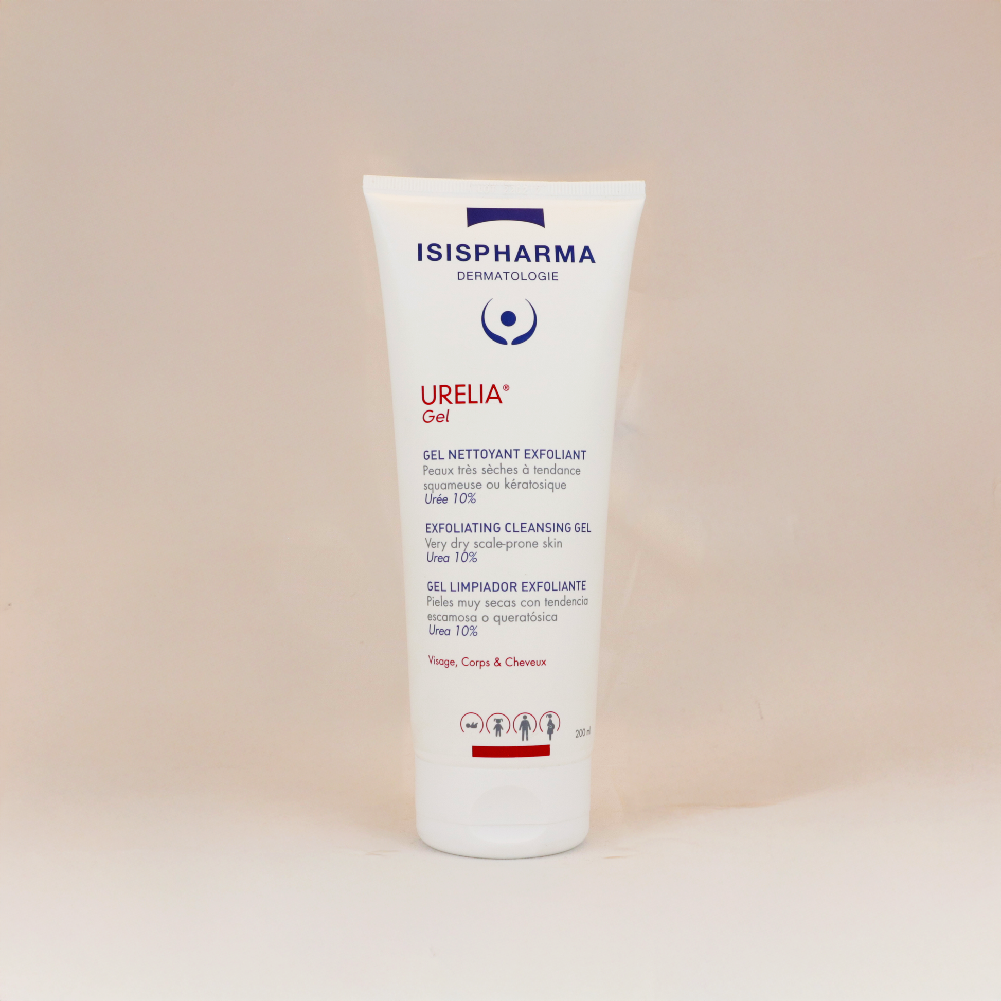 Isispharma Urelia Gel 200ml es un gel limpiador exfoliante y humectante formulado para pieles muy secas, escamosas o con tendencia a la hiperqueratosis. Su fórmula suave y sin jabón elimina las impurezas mientras hidrata y calma la piel, restaurando su confort y flexibilidad.