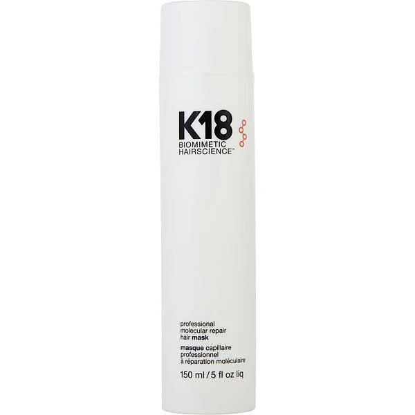 K18 Pro Mascarilla Reparadora 150ml es la mascarilla profesional intensiva diseñada para reparar y restaurar el cabello dañado , fortaleciendo la fibra capilar desde el interior mediante la tecnología molecular K18Peptide™ .