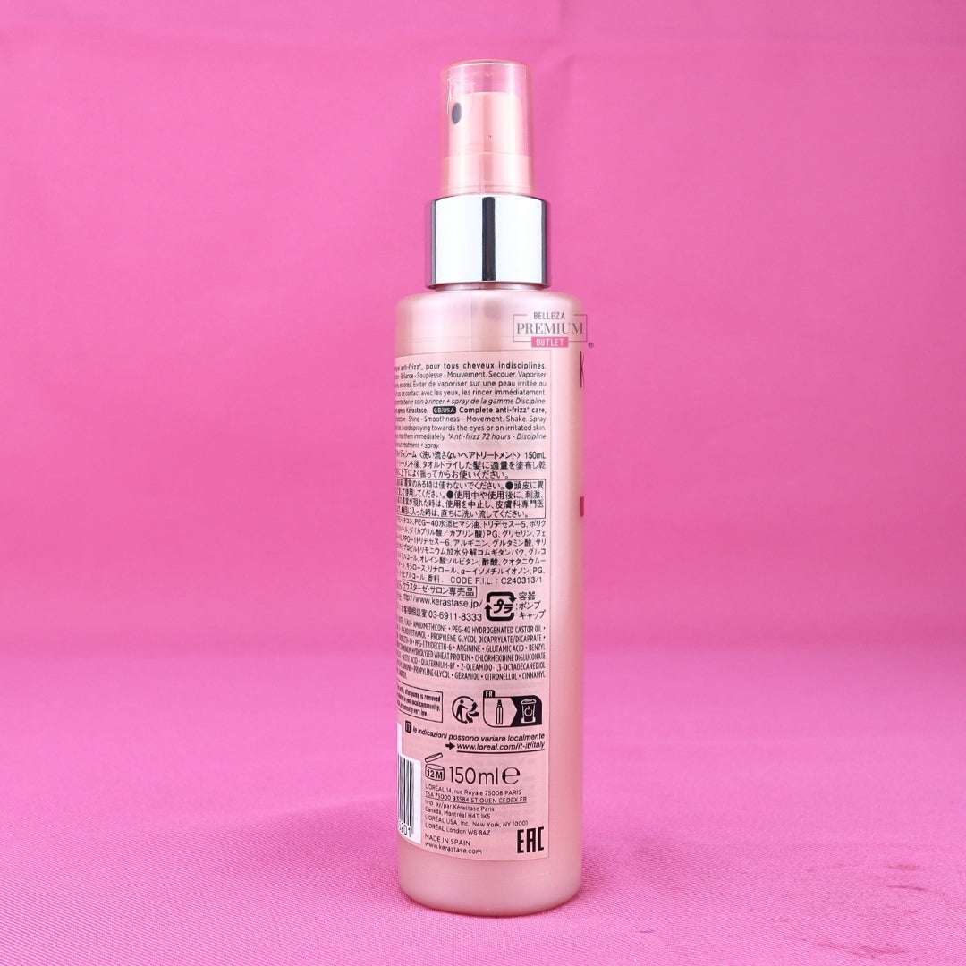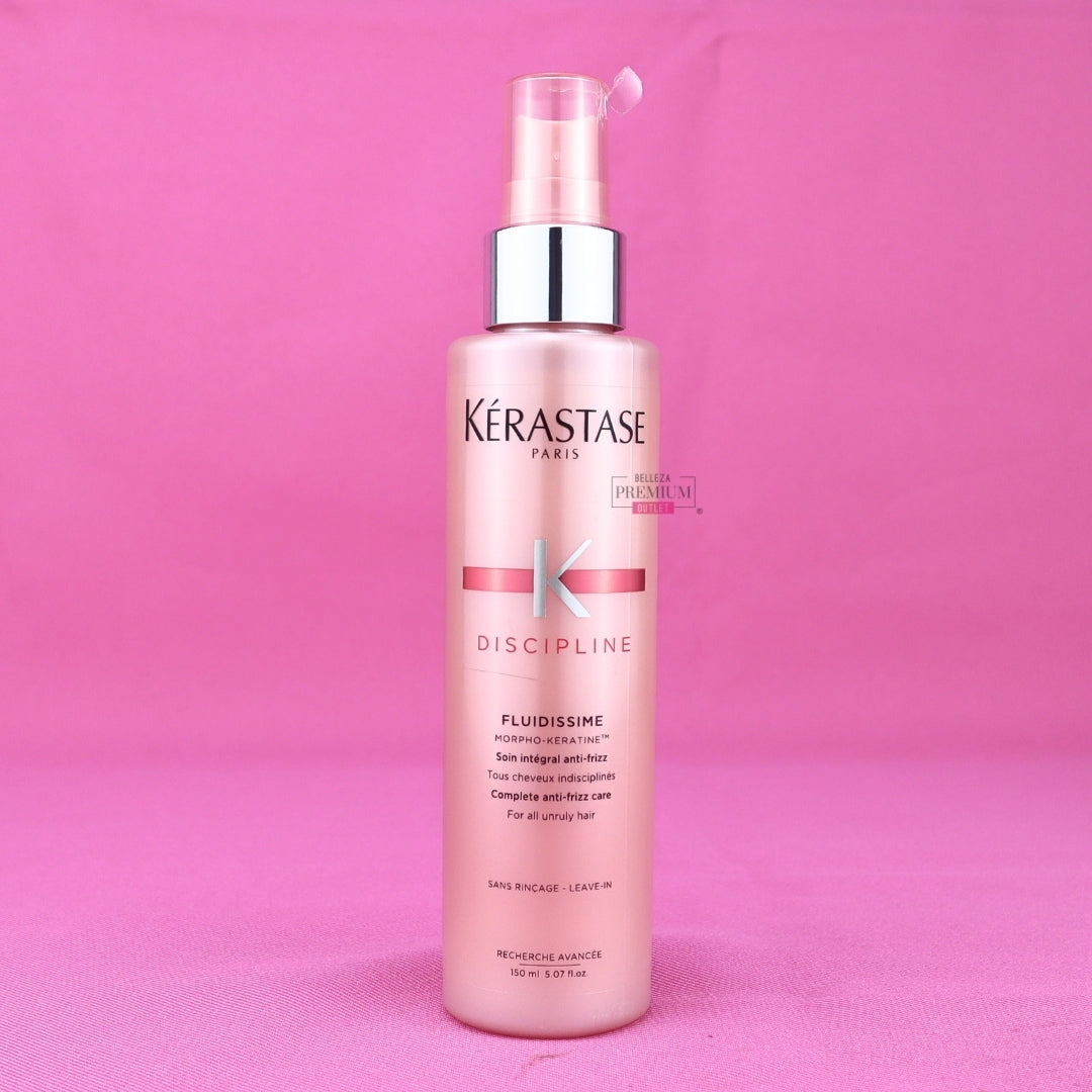 Kérastase Discipline Fluidissime es un spray anti-frizz termoprotector sin enjuague diseñado para controlar el encrespamiento, suavizar la fibra capilar y proteger el cabello del calor hasta 230 °C. Su fórmula avanzada facilita el peinado, reduce el tiempo de secado y deja el cabello con movimiento natural, brillo y un acabado sedoso.
