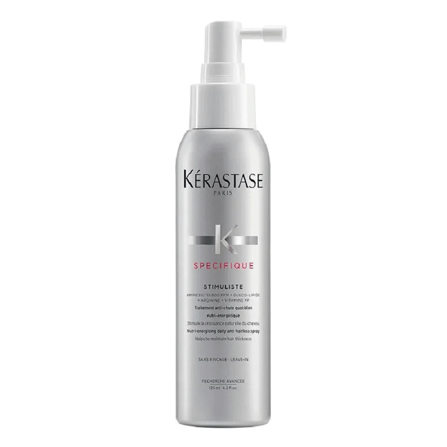 Kérastase Specifique Spray Stimuliste 125ml es un tratamiento estimulante para el cuero cabelludo que ayuda a reactivar la microcirculación y fortalecer la raíz del cabello , promoviendo un cabello más saludable y resistente a la caída temporal.