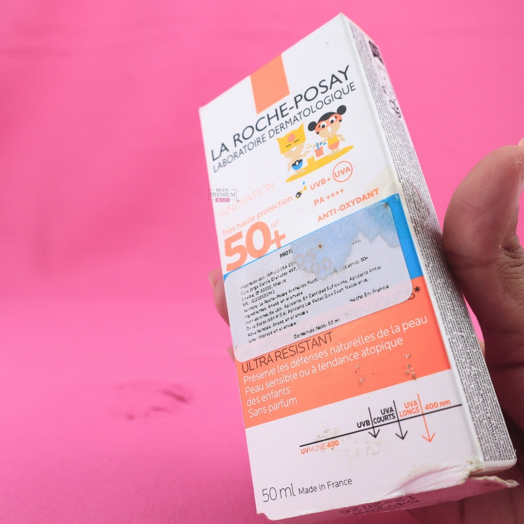 Un protector solar facial de muy alta protección (FPS 50+), ultra ligero y específico para piel pediátrica. Su fórmula ultrafluida se absorbe rápidamente, no deja residuos blancos ni sensación grasosa, ideal para las pieles más delicadas. Aunque la caja está dañada, el producto se encuentra intacto y seguro para usar.