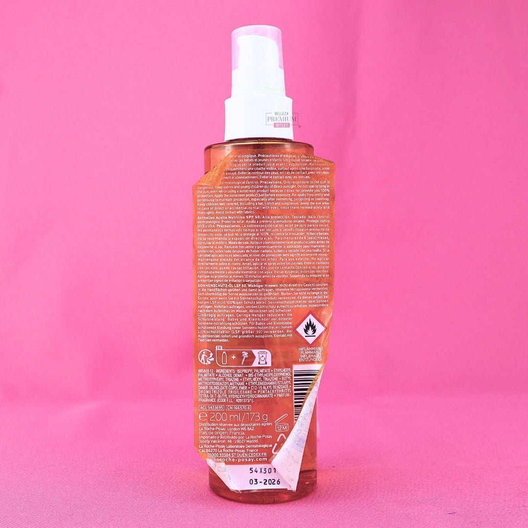 La Roche-Posay Anthelios Oil SPF50+ 200ml es un aceite solar de alta protección diseñado para proteger la piel frente a los rayos UVA y UVB. Su fórmula ligera y no pegajosa aporta brillo saludable y resistencia al agua, ideal para todo tipo de piel y para quienes buscan un acabado luminoso.