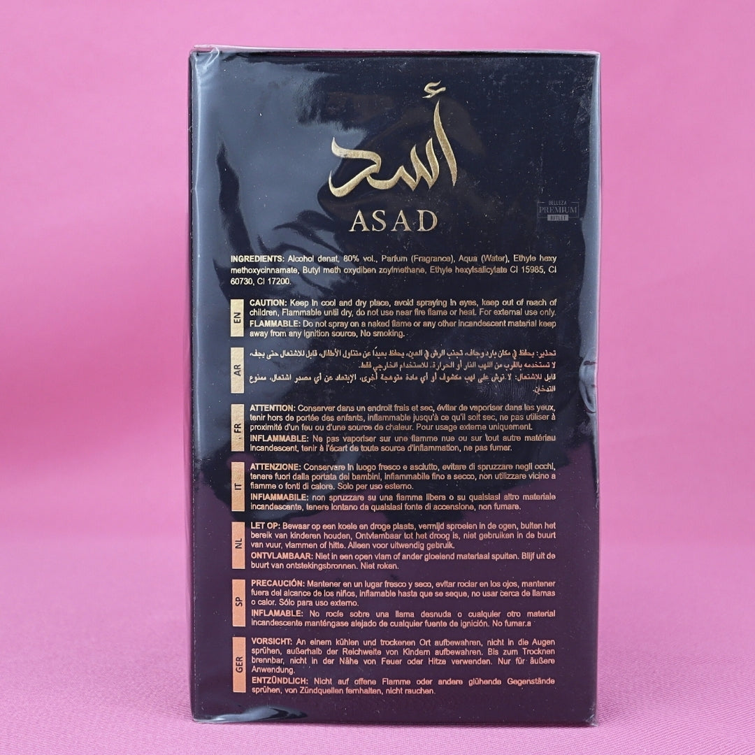 Lattafa Asad EDP 100 ml con caja dañada es una joya para quienes desean destacar con un aroma potente y envolvente, sin pagar de más. Mismo carácter audaz, nueva oportunidad para tu colección.