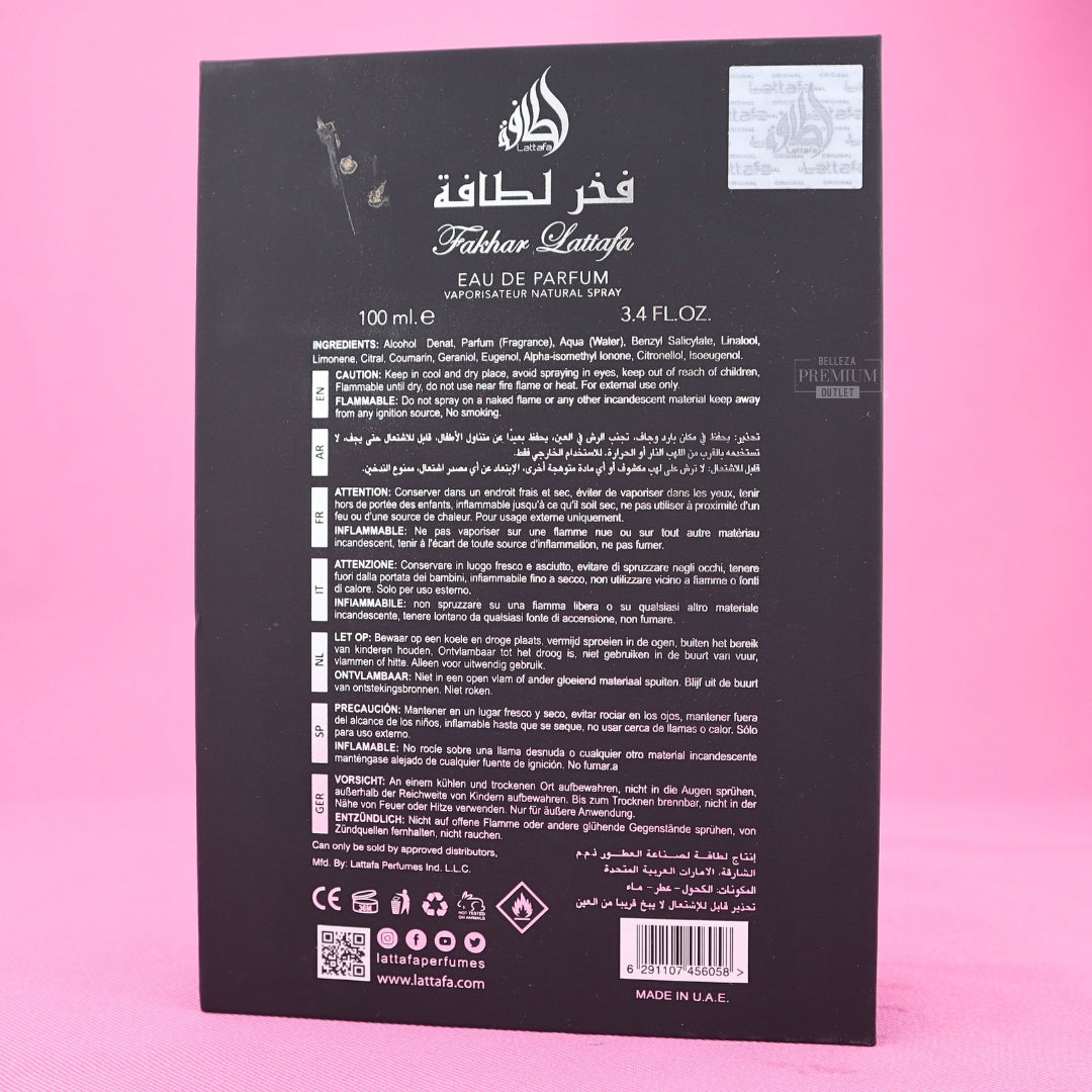 Lattafa Fakhar Men EDP 100ml es una fragancia masculina moderna, enérgica y elegante que combina notas frescas, dulces y amaderadas con una fijación sobresaliente. Inspirada en el carácter vibrante y juvenil de perfumes como Yves Saint Laurent Y EDP y Invictus de Paco Rabanne, esta propuesta de la casa Lattafa destaca por su versatilidad y potencia. La unidad presenta CAJA DAÑADA, pero el contenido se encuentra intacto, en perfectas condiciones de uso.
