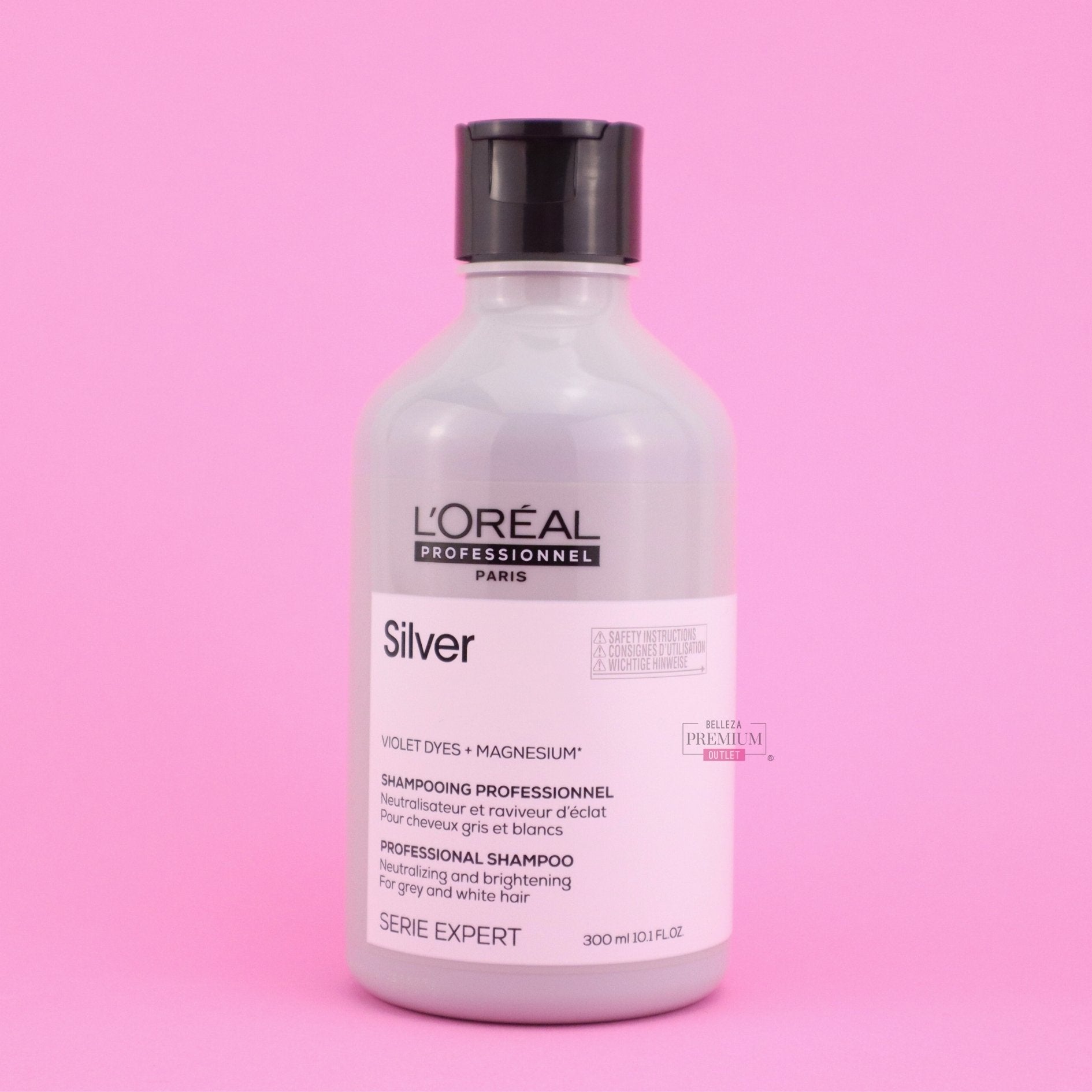 L'Oréal Serie Expert Shampoo Silver 300ml – Cabello Rubio, Canoso o Decolorido con Brillo y Neutralización de Tonos Amarillos