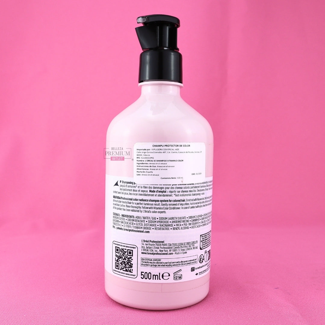 Cuida tu cabello teñido con L’Oréal SE Shampoo Vitamino Color 500ml y prolonga su color y brillo profesional. Disponible en Belleza Premium Outlet con descuento especial por tapa rota y envase golpeado, garantizando siempre producto original y seguro.