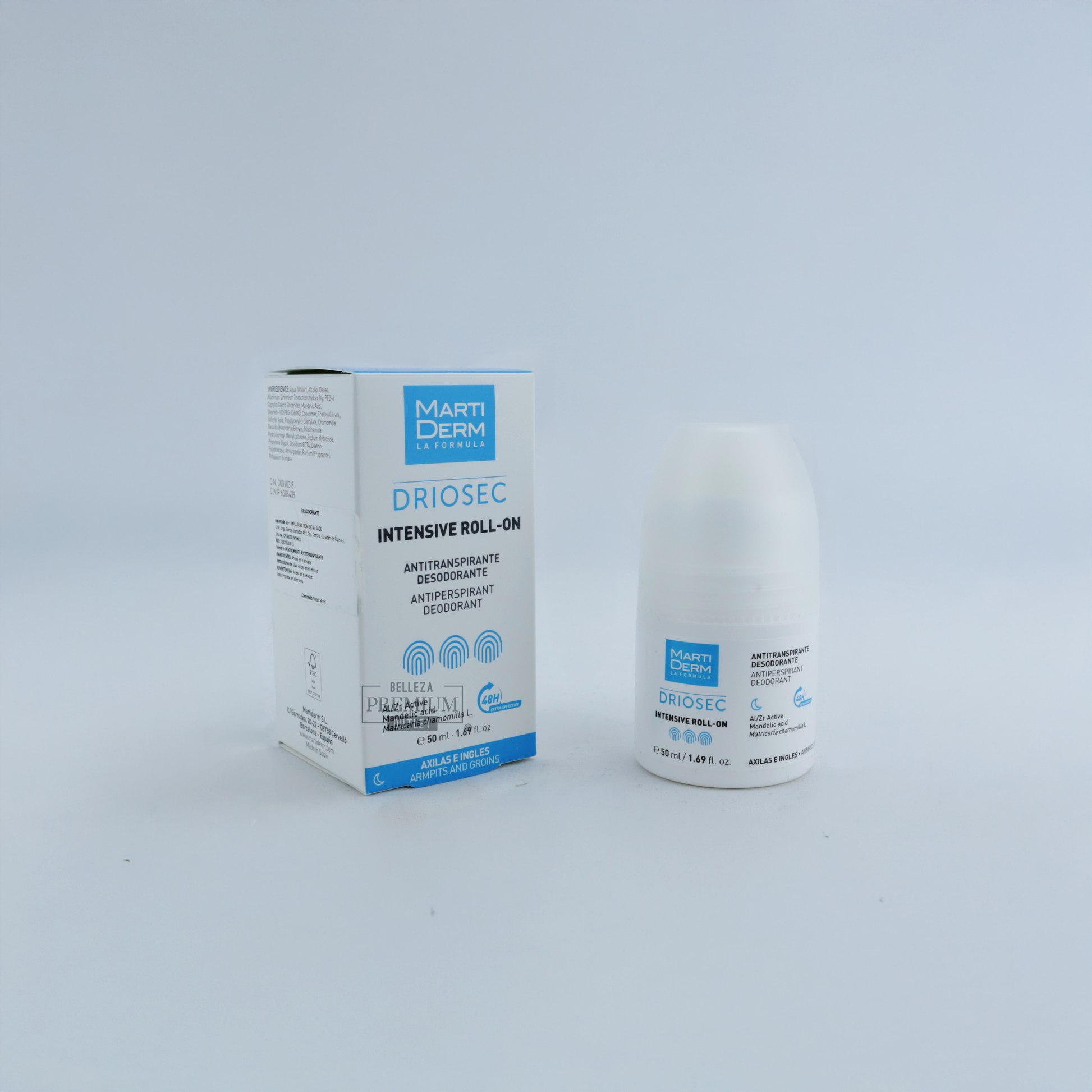 ¡Mantente seco y fresco todo el día con MartiDerm Driosec Intensive Roll-on, disponible en BELLEZA PREMIUM OUTLET, tu aliado profesional para el control de la sudoración!