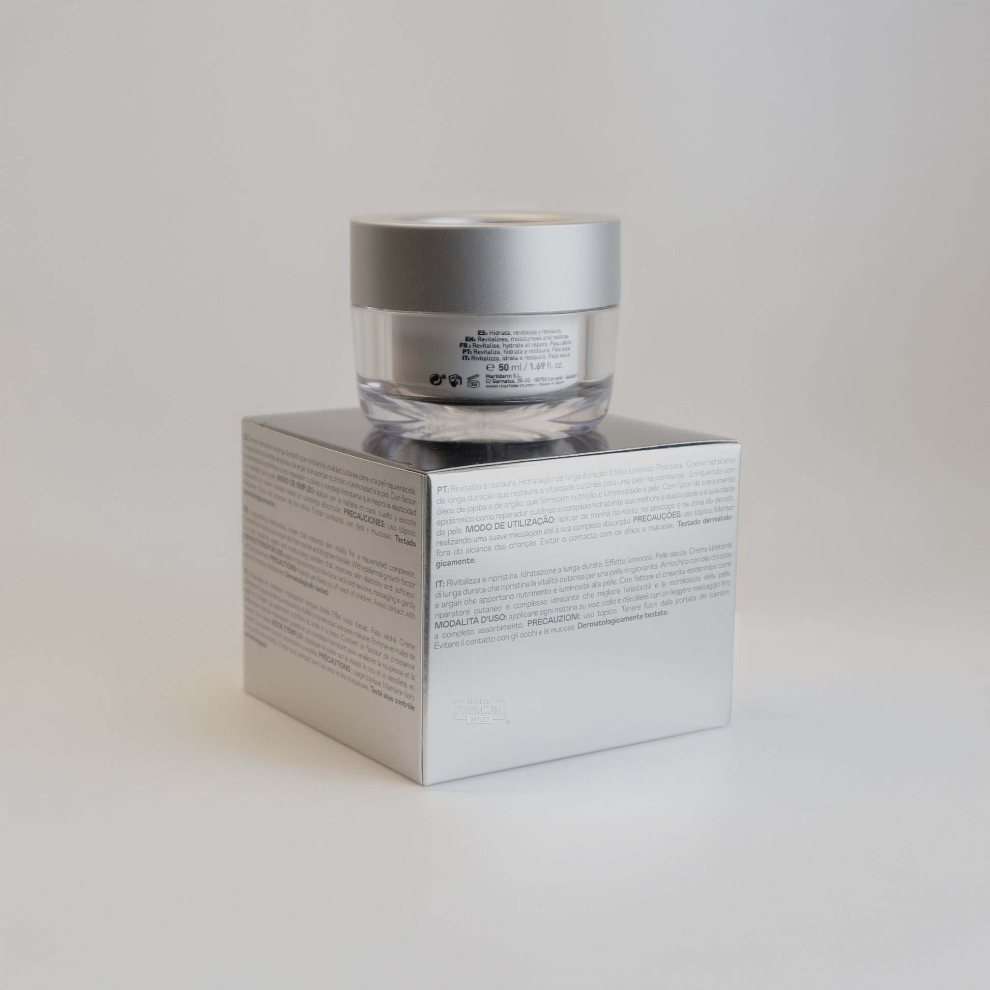 Crema de día especialmente formulada para pieles secas y muy secas que necesitan nutrición profunda y revitalización. Su fórmula combina Factor de Crecimiento Epidérmico (EGF), aceites de jojoba y argán, y un complejo hidratante de larga duración que mantiene la piel suave e hidratada hasta 24 horas.