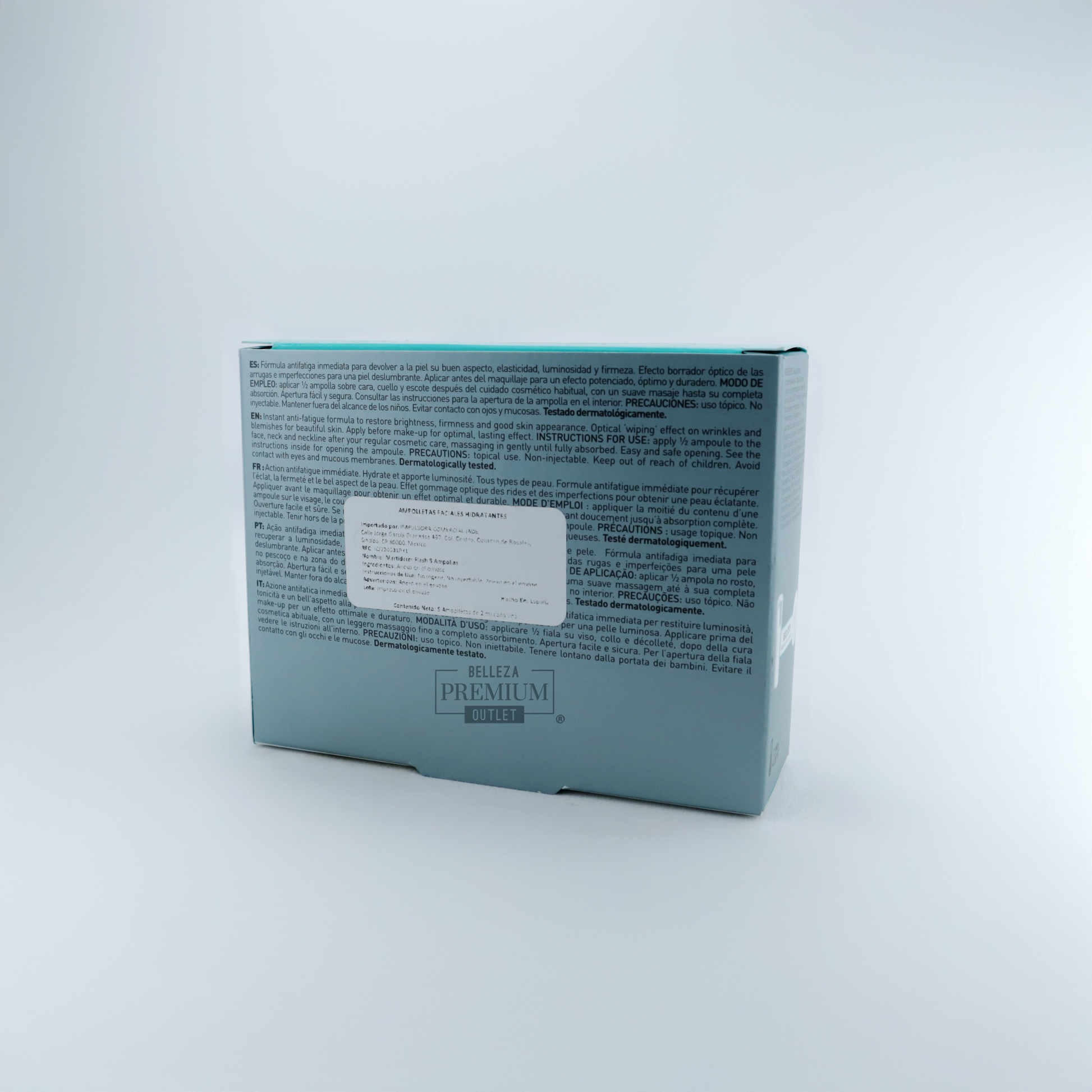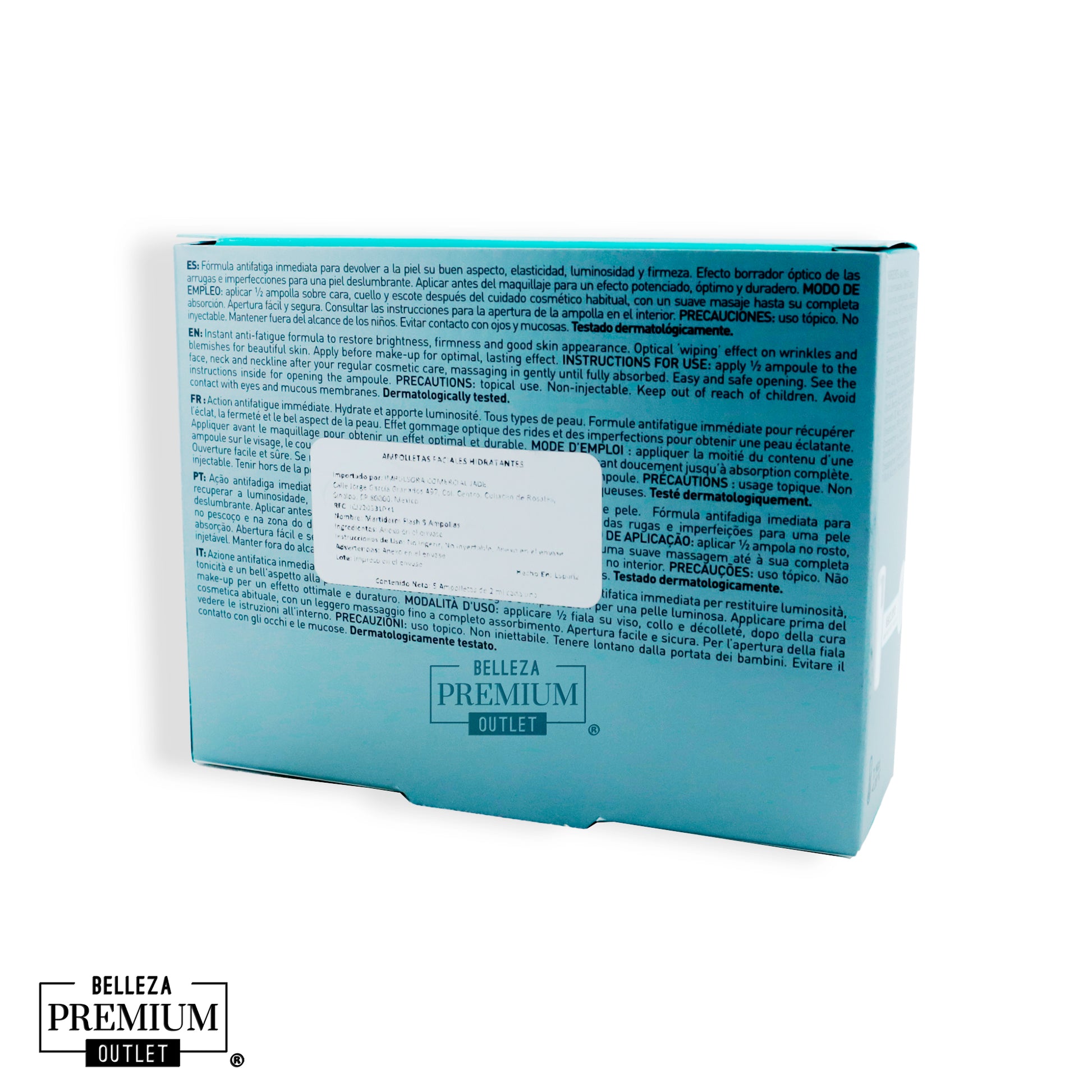 Aplicar media ampolla sobre rostro, cuello y escote limpios.