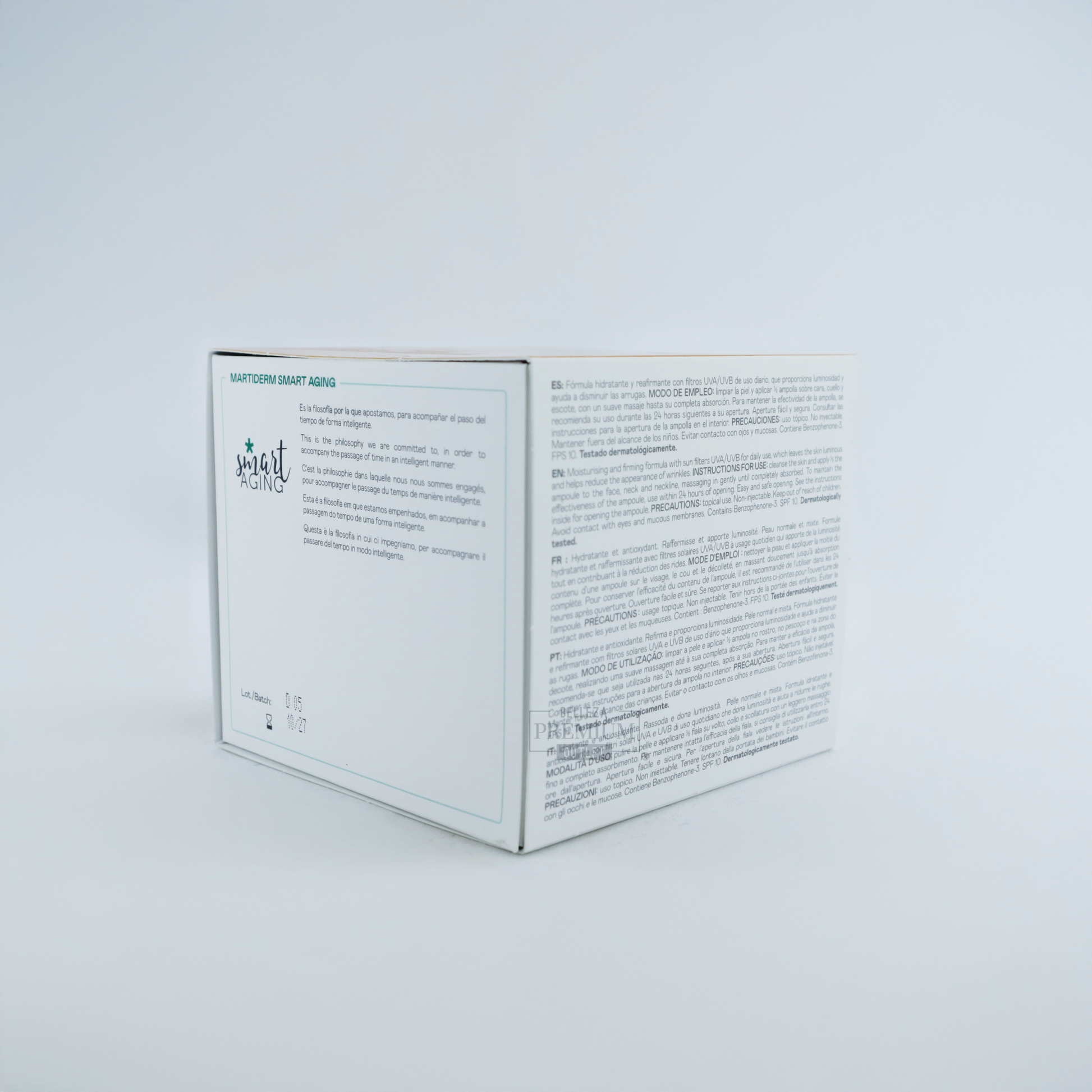 Aplicar media ampolla sobre rostro, cuello y escote limpios.