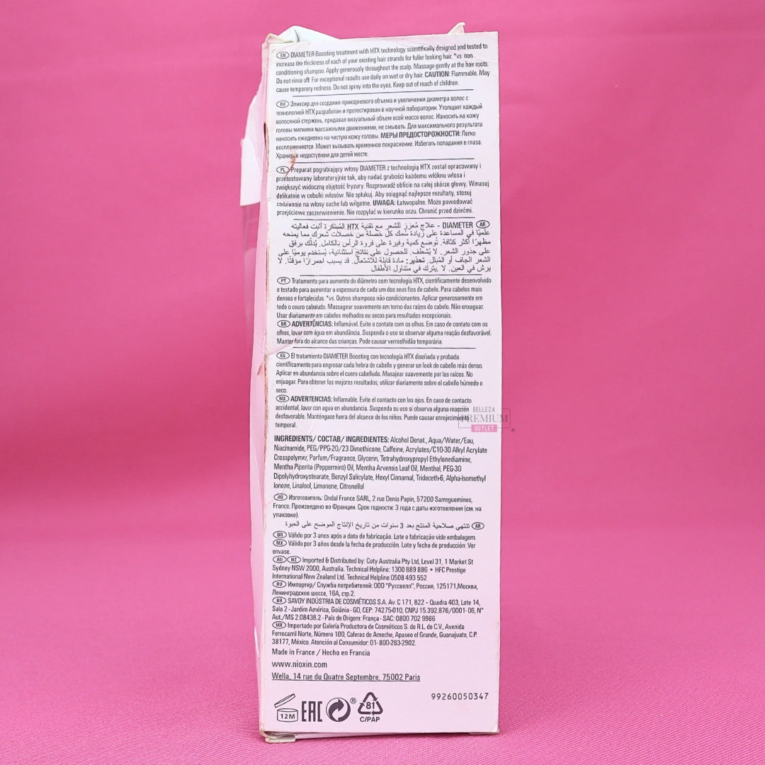Nioxin 3D Intensive Diaboost Tratamiento 100 ml es un tratamiento capilar intensivo diseñado para aumentar el diámetro de cada hebra de cabello, brindando una apariencia visiblemente más densa, fuerte y voluminosa desde la primera aplicación. Esta poderosa fórmula actúa desde la raíz, penetrando profundamente en la fibra capilar para reforzar su estructura interna y protegerla contra el quiebre. Su tecnología avanzada Thickening Xtrafusion™, con cafeína, pantenol y niacinamida, ayuda a mejorar la resistencia del cabello, facilitando el peinado y dándole cuerpo al instante.