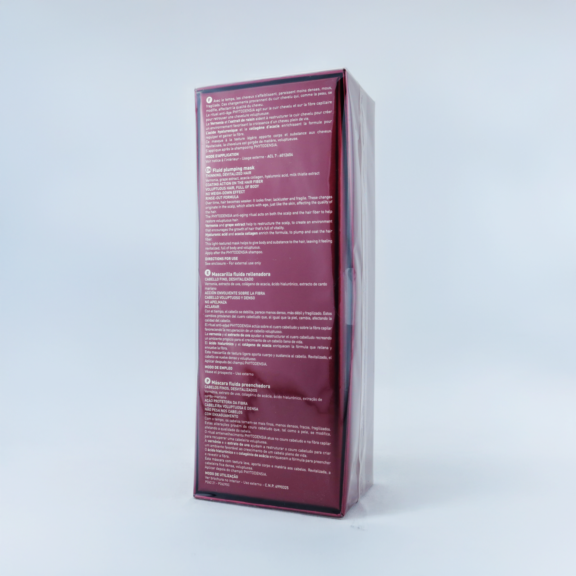 La Phyto Phytodensia Fluid Plumping Mask es una mascarilla revitalizante especialmente formulada para cabello afinado, debilitado o con pérdida de densidad. Gracias a su fórmula rica en ácido hialurónico, colágeno vegetal, uva y vernonia, rellena la fibra capilar desde el interior, fortaleciendo el cabello y devolviéndole cuerpo, grosor y elasticidad. Su textura fluida se absorbe rápidamente, dejando el cabello más denso, fuerte y visiblemente rejuvenecido.