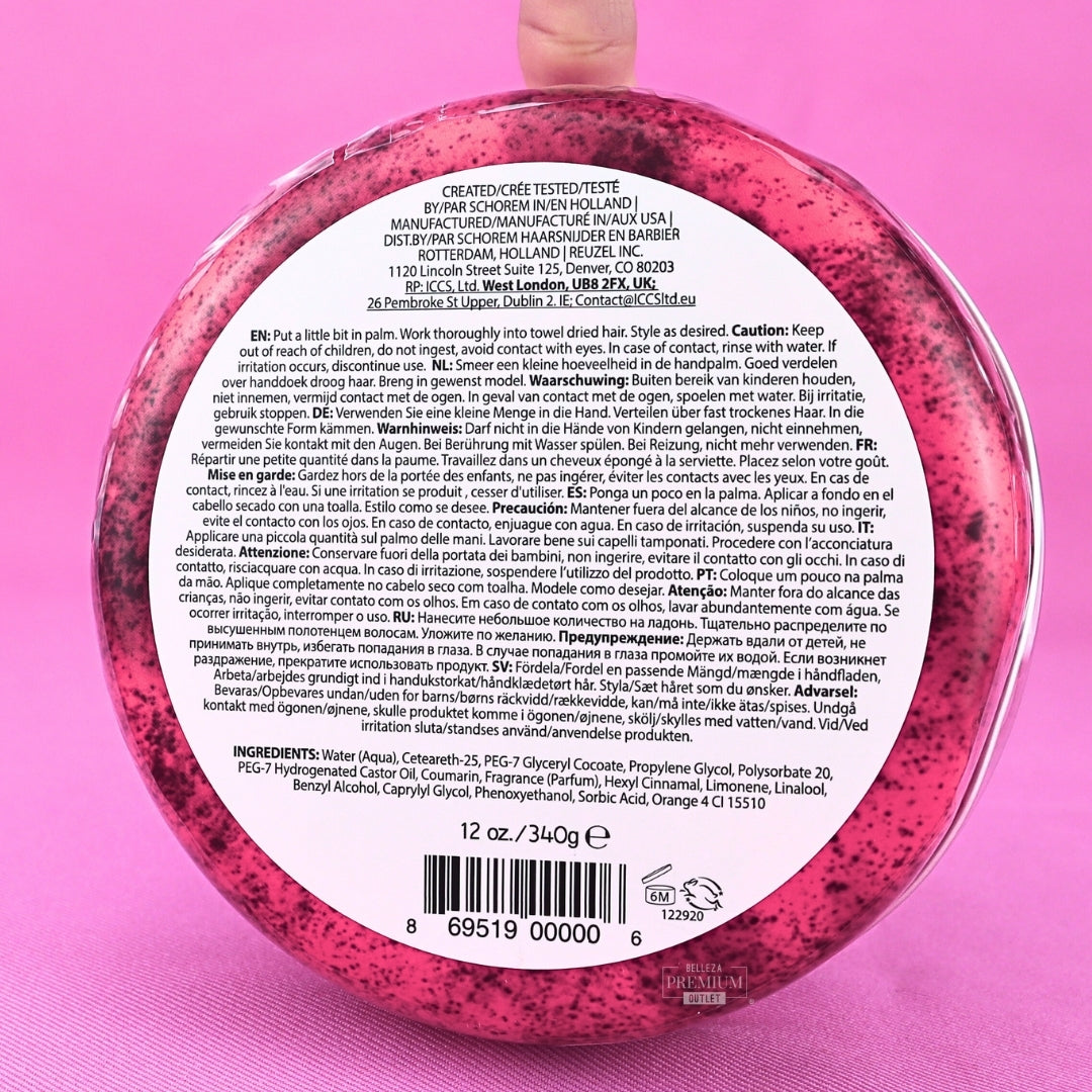 Water, Petrolatum, Cera Alba (Beeswax), Lanolin, Fragrance, Mineral Oil, Hydroxyethylcellulose, Glycerin, Tocopheryl Acetate, entre otros activos que proporcionan fijación, brillo y cuidado capilar.