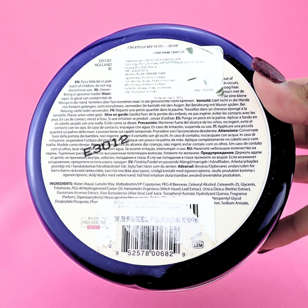 En Belleza Premium Outlet puedes adquirir Reuzel Pomade Fiber 12oz / 340g a un precio especial, disfrutando de la misma fijación, textura y acabado mate profesional, aunque el envase esté dañado.