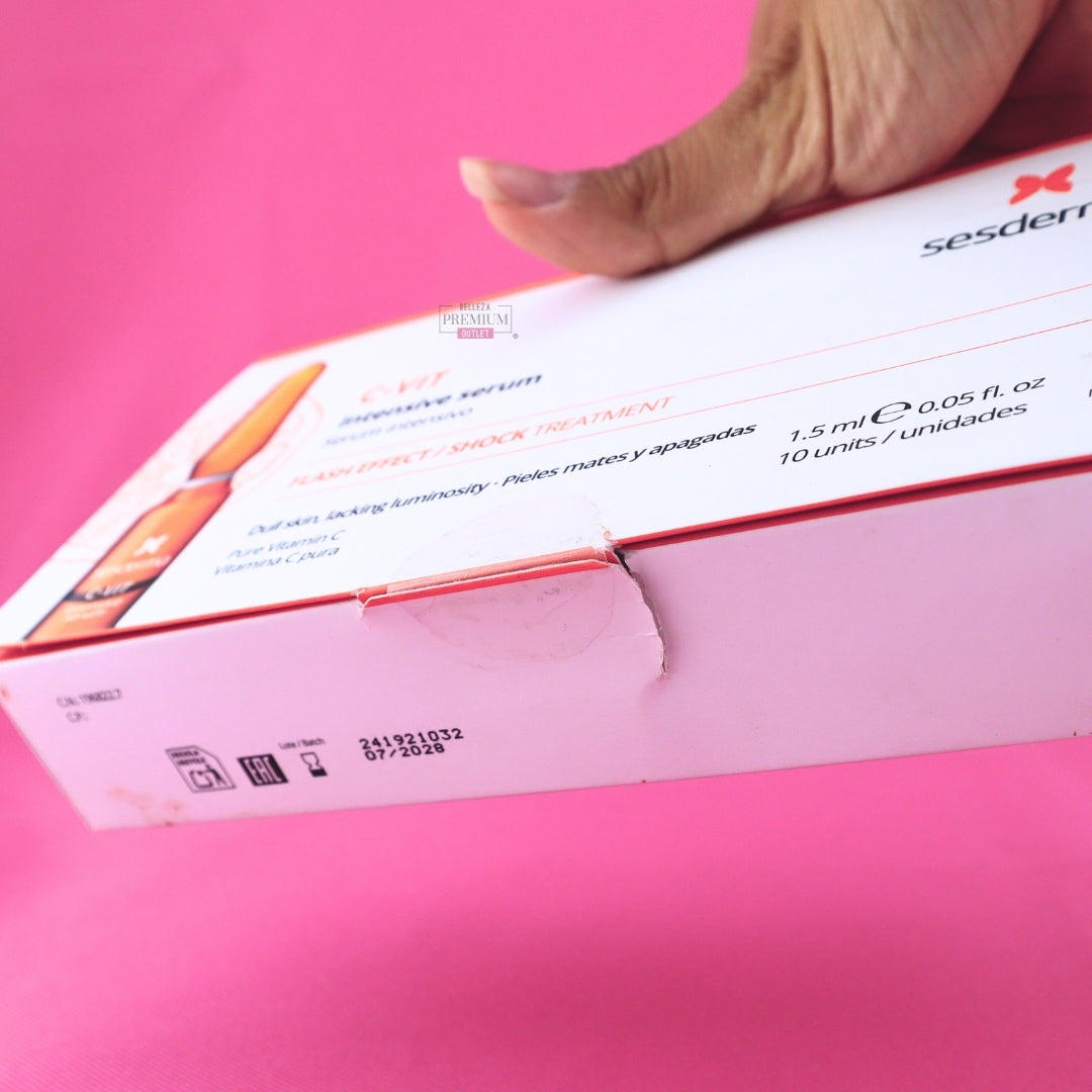 Sesderma C-Vitamin Intensive Serum 12% Ampoules es un tratamiento intensivo en formato de ampollas de 1,5 ml, formulado con un 12% de vitamina C estabilizada. Este sérum, de la reconocida marca dermatológica Sesderma, se destaca por su potente efecto antioxidante, iluminador y rejuvenecedor en la piel. Al estar presentado en ampollas individuales, permite una conservación óptima del producto, protegiendo sus activos de la oxidación y manteniendo la frescura de sus ingredientes hasta el momento de aplicación. Ideal para revitalizar y mejorar el tono y la textura de la piel, el C-Vitamin Intensive Serum es recomendado especialmente para pieles apagadas, con signos de fatiga o afectadas por el daño ambiental.