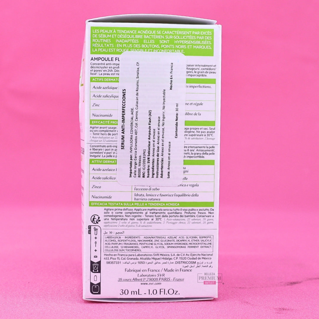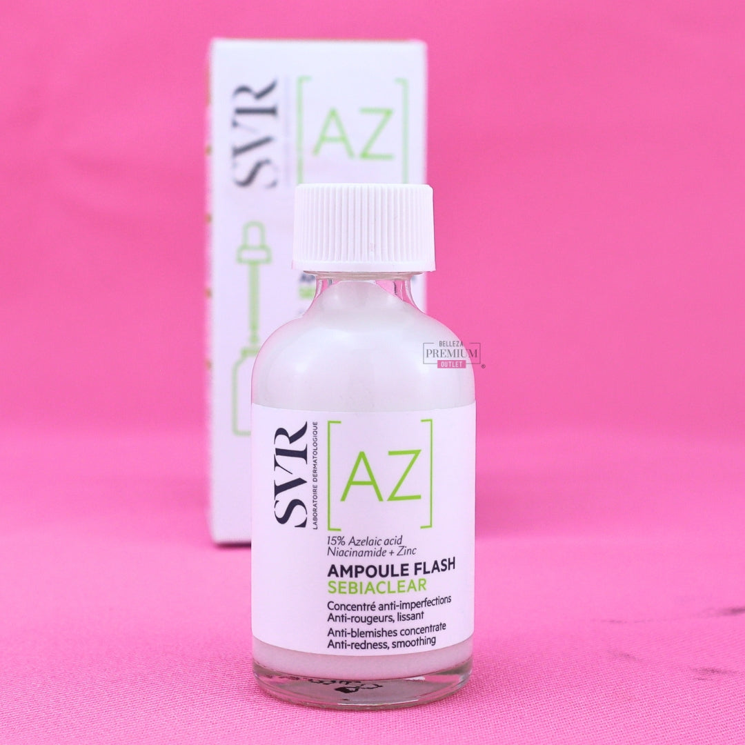 Consigue una piel visiblemente más lisa, fresca y luminosa con SVR Sebiaclear Ampoule Flash (AZ) 30ml, disponible en BELLEZA PREMIUM OUTLET con descuento especial. (Producto con caja dañada, pero contenido en perfecto estado y 100 % funcional).