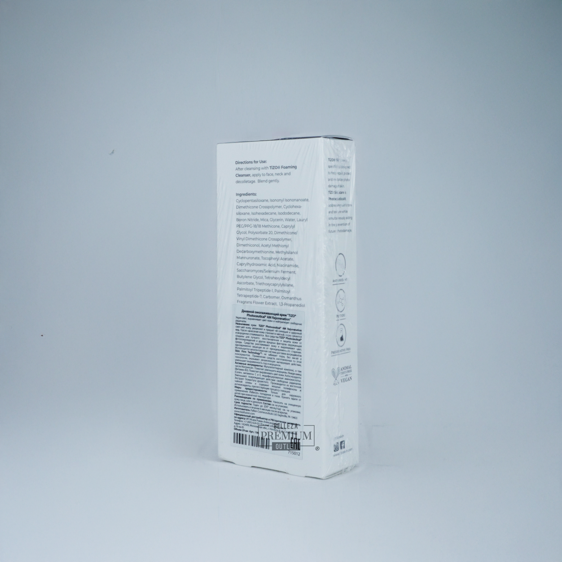 Después de limpiar y preparar la piel con el limpiador espumante TIZO®, aplique en la cara, el cuello y el escote. Mezclar suavemente hasta su completa absorción.