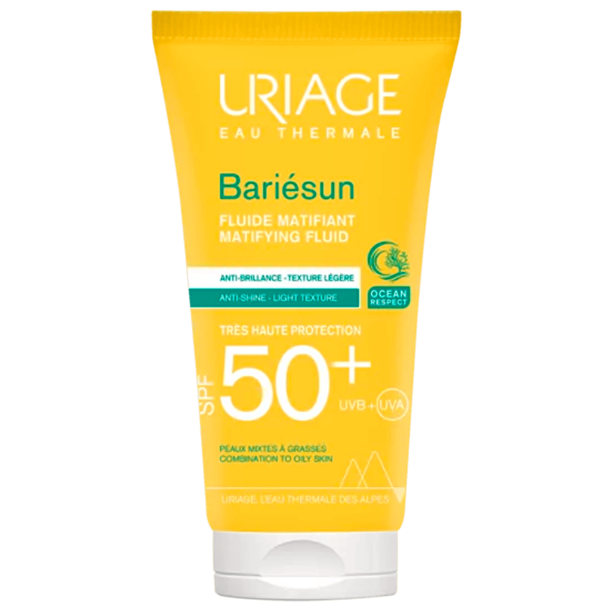 Uriage Bariésun Fluido Mat SPF50+ 50ml es un bloqueador solar facial fluido y matificante diseñado específicamente para pieles grasas o con tendencia acneica. Su fórmula ligera ofrece máxima protección solar frente a rayos UVA y UVB mientras controla el exceso de sebo y deja un acabado mate sin obstruir los poros.