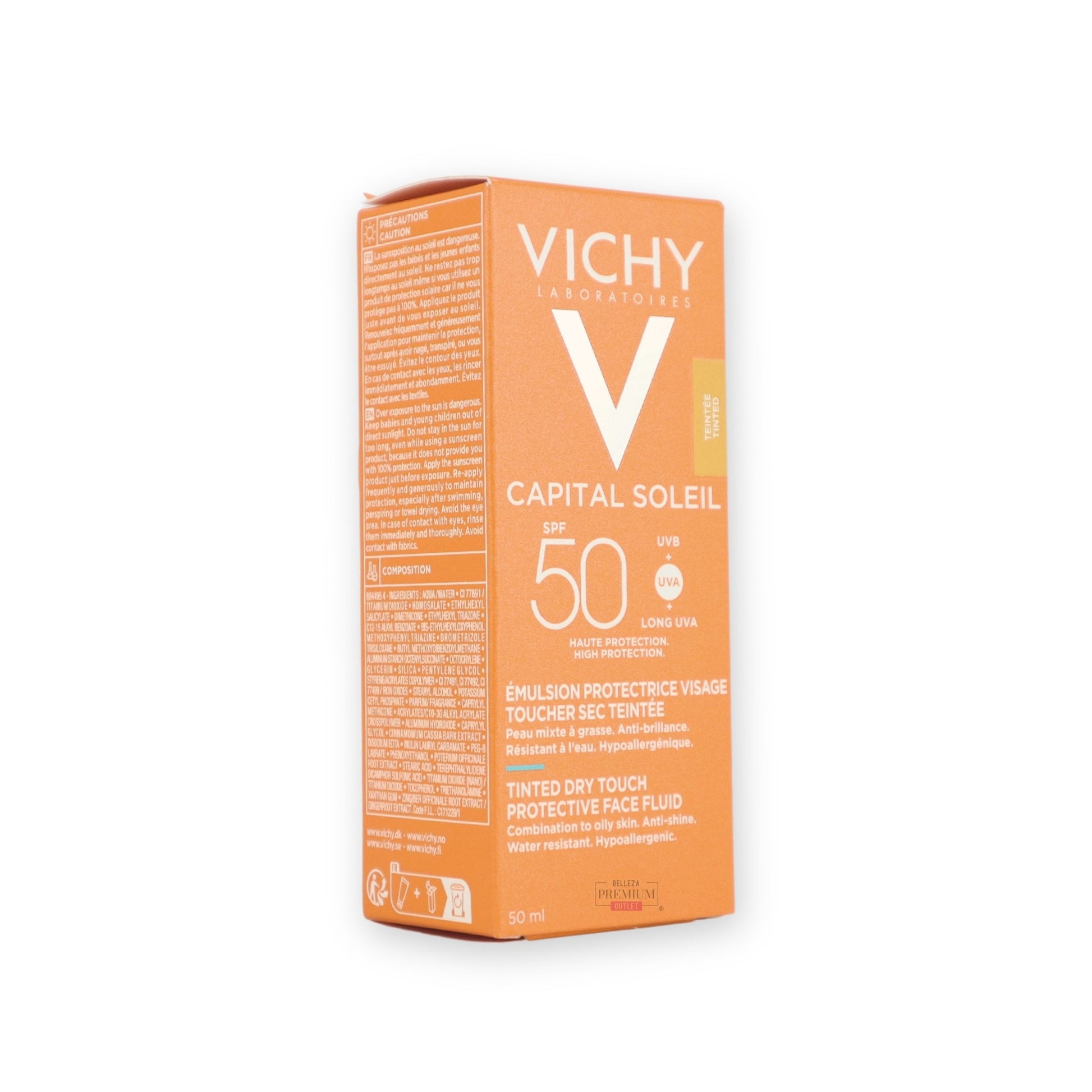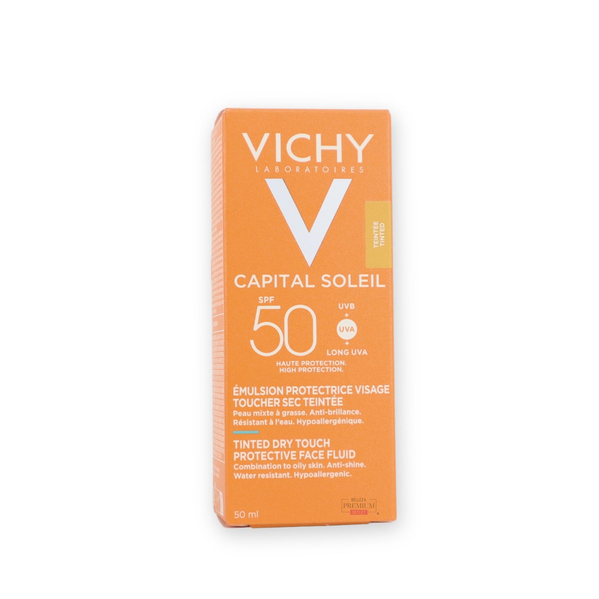 Las características principales de la Vichy Capital Soleil BB Emulsion Toucher Sec Teintée SPF 50 - 50ml incluyen: