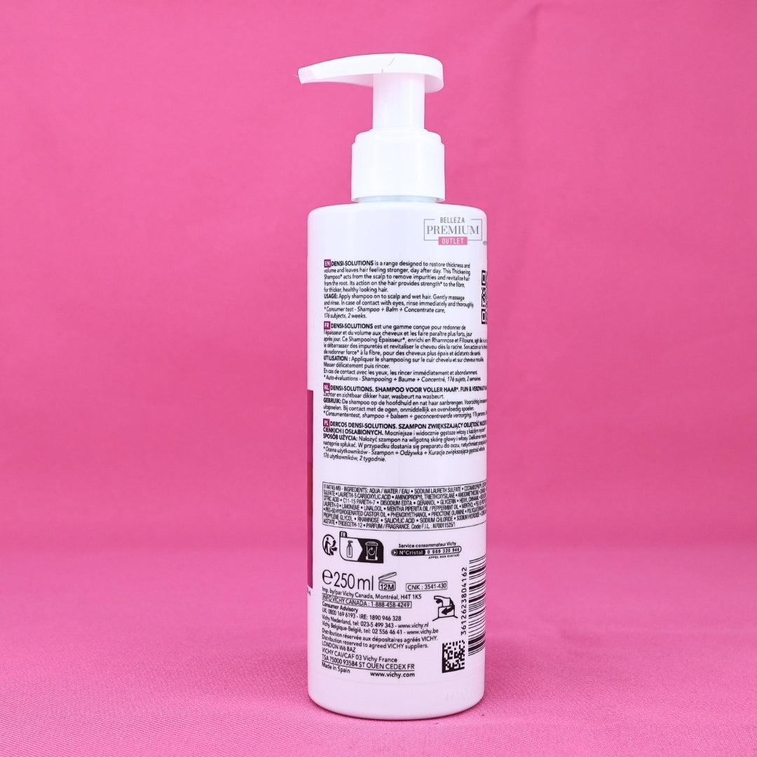 Devuelve fuerza y densidad a tu cabello con Vichy Dercos Thickening Shampoo 250ml, disponible en BELLEZA PREMIUM OUTLET con descuentos irresistibles. (Producto con envase roto, pero contenido íntegro y totalmente funcional).