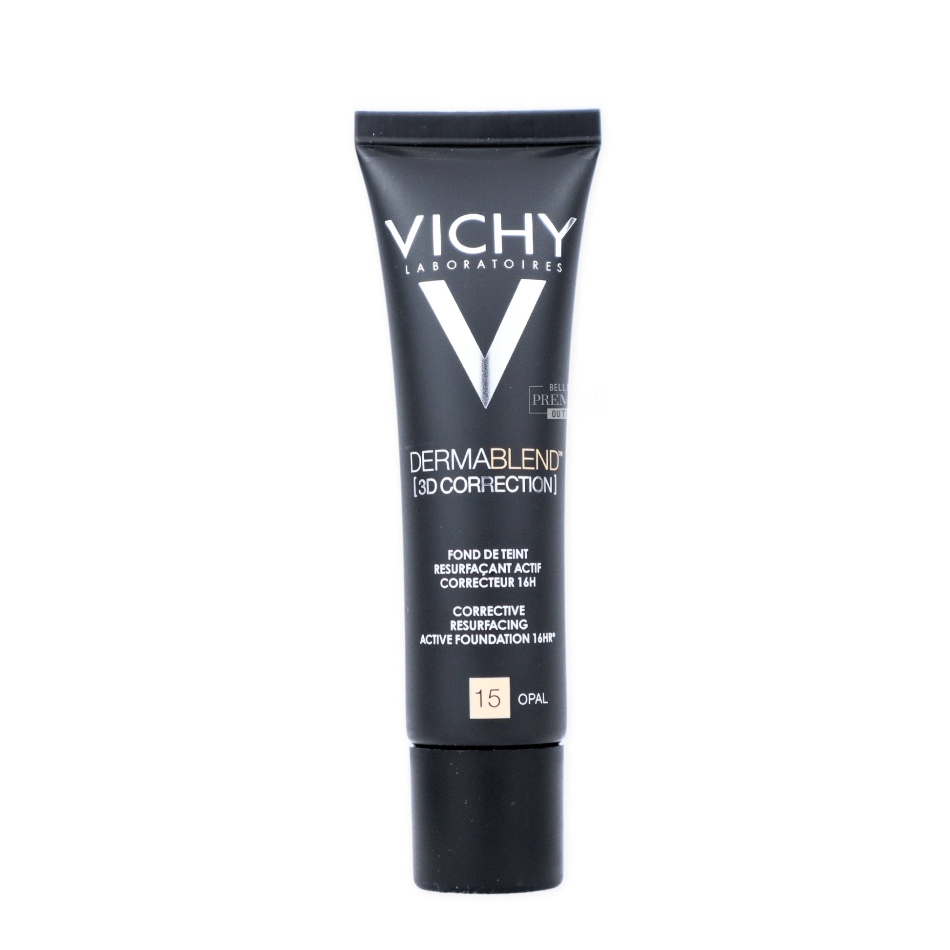 Vichy Dermablend 3D Correction SPF 25 en tono 15 Opal sirve para corregir y cubrir imperfecciones de la piel, como manchas, cicatrices y rojeces, proporcionando una alta cobertura y protección solar.
