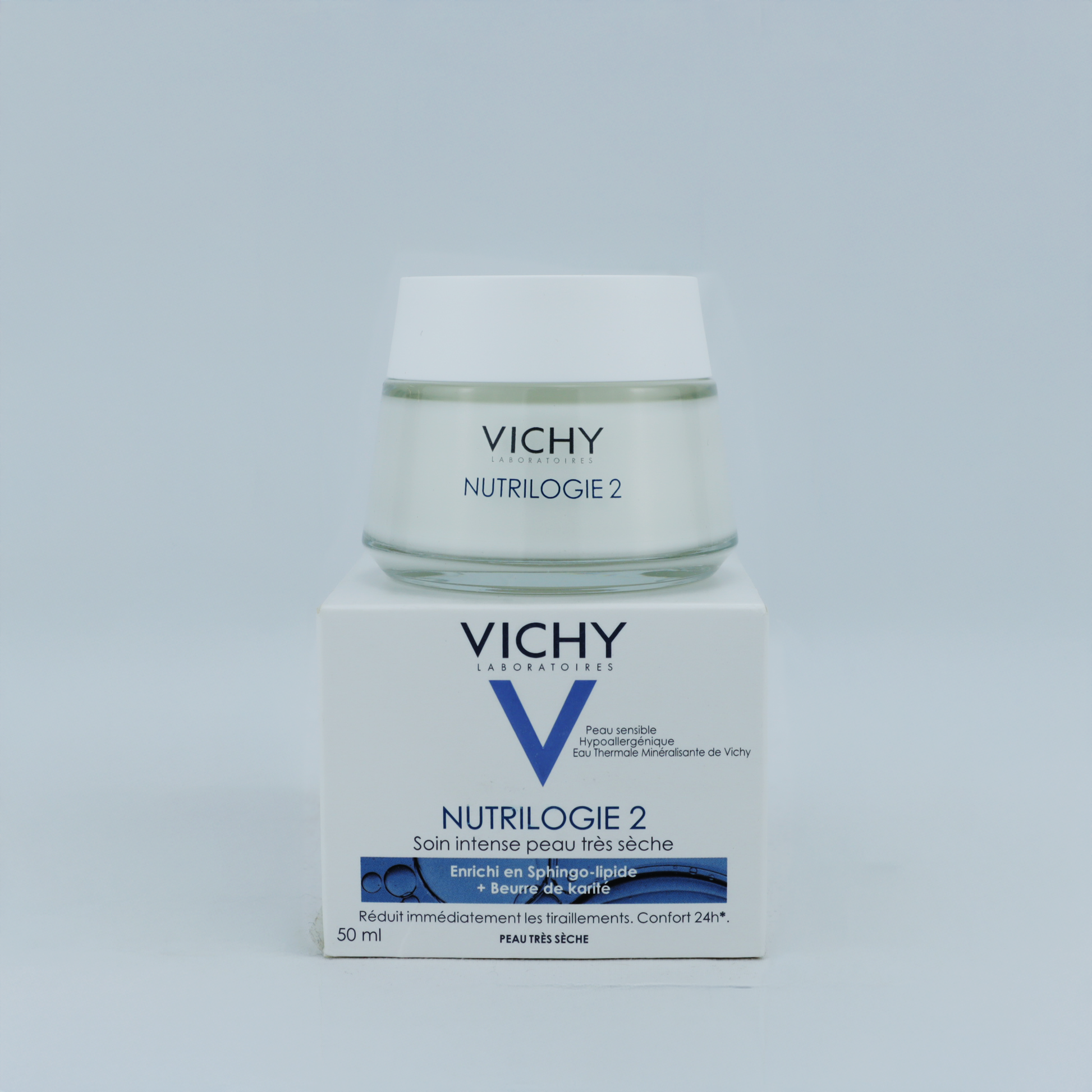 Vichy Nutrilogie 2 es una crema nutritiva intensiva especialmente formulada para pieles muy secas y sensibles . Enriquecida con esfingolípidos y aceites vegetales , actúa en las capas profundas de la piel para restaurar la barrera lipídica, calmar la tirantez y prevenir la deshidratación crónica . Su textura rica y fundente proporciona confort inmediato y duradero .