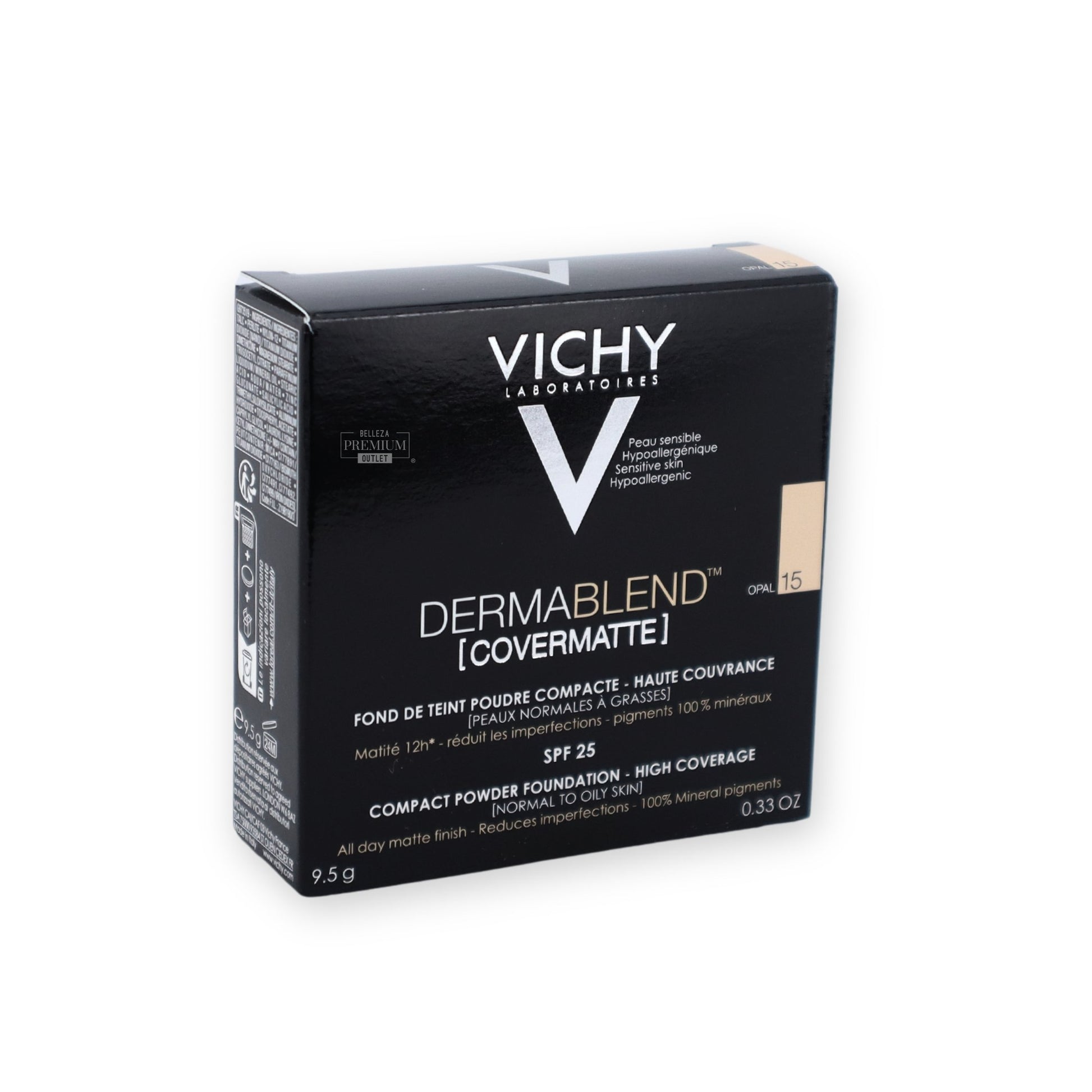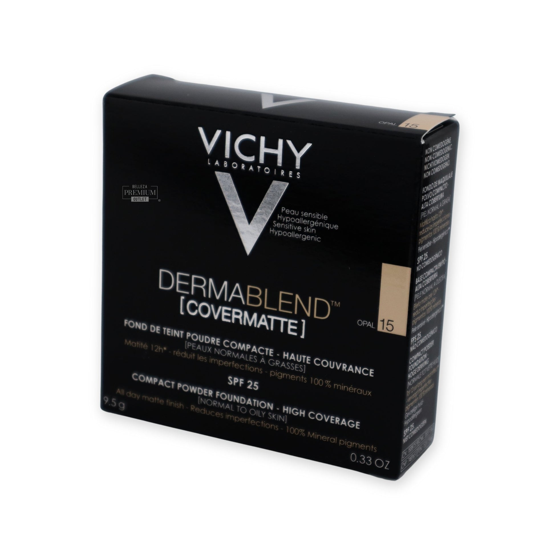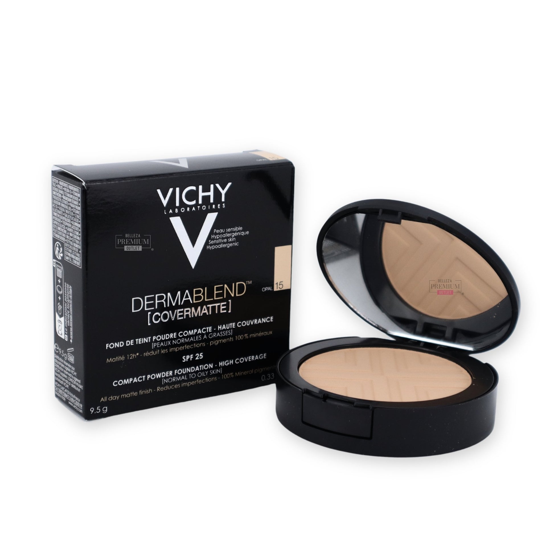 Vichy Dermablend Covermatte Powder 15 28g es un polvo compacto de alta cobertura, especialmente diseñado para piel con imperfecciones, exceso de brillo o tono desigual. Su fórmula combina efecto matificante y corrector, proporcionando un acabado natural y duradero.